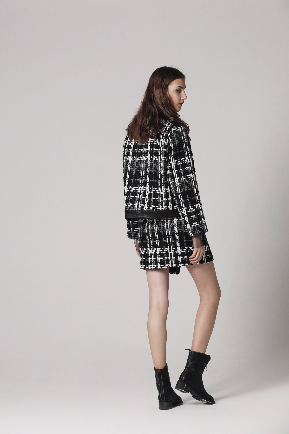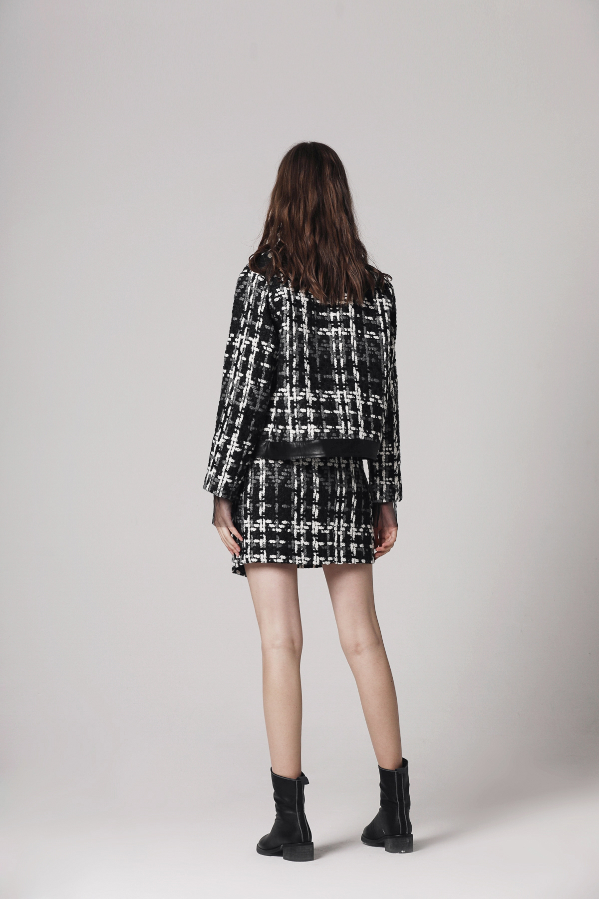 181002粗花呢拼皮裙