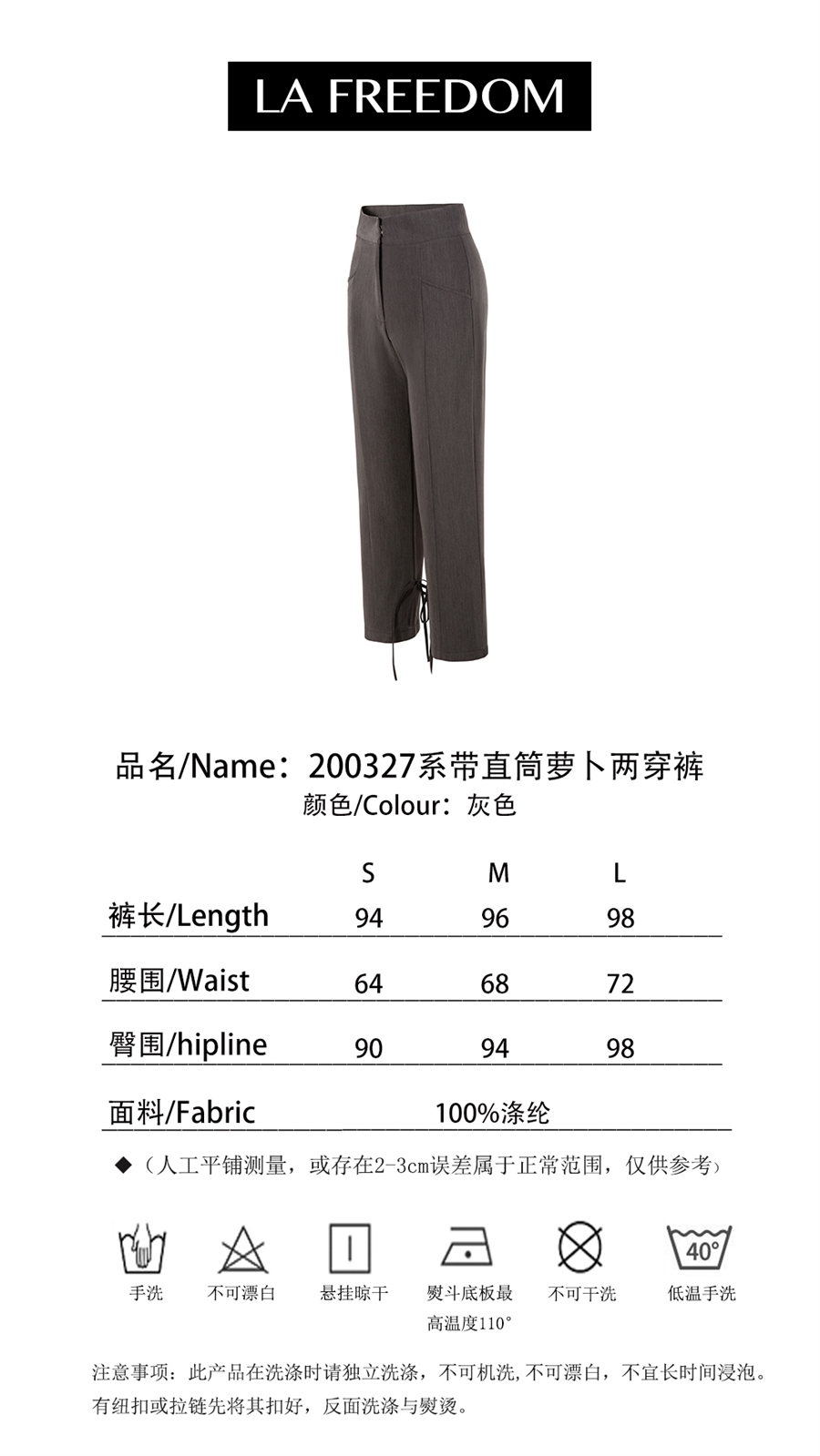 200327系带直筒萝卜两穿裤