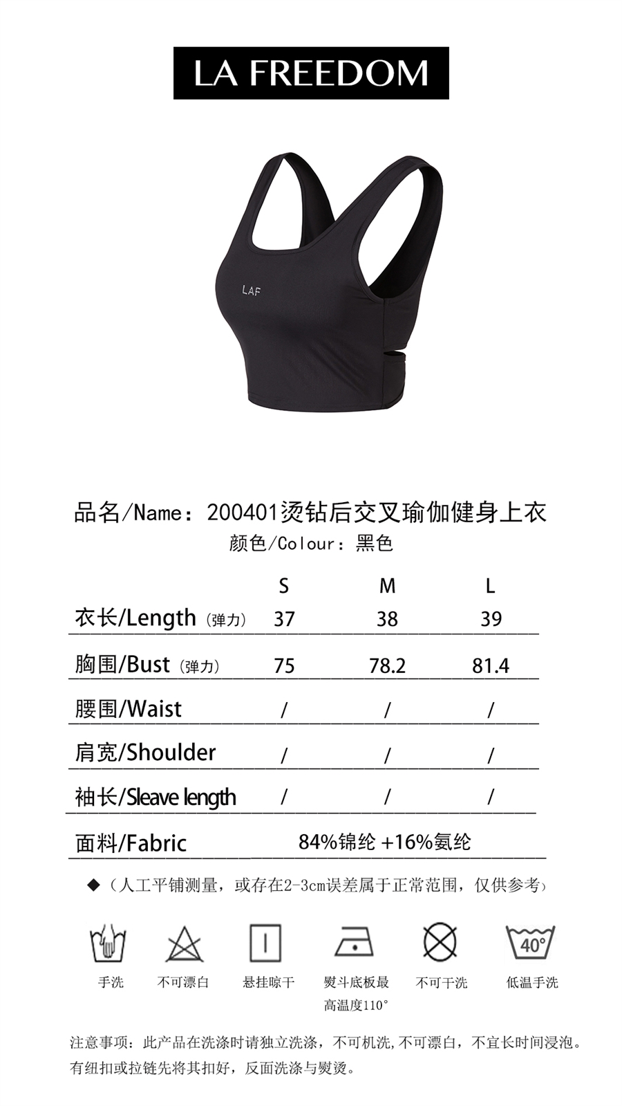 200401烫钻后交叉瑜伽健身上衣 -