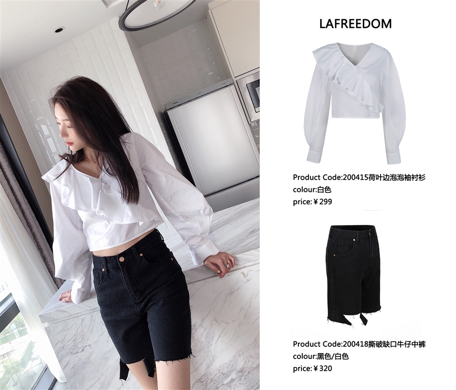 200415荷叶边泡泡袖衬衫