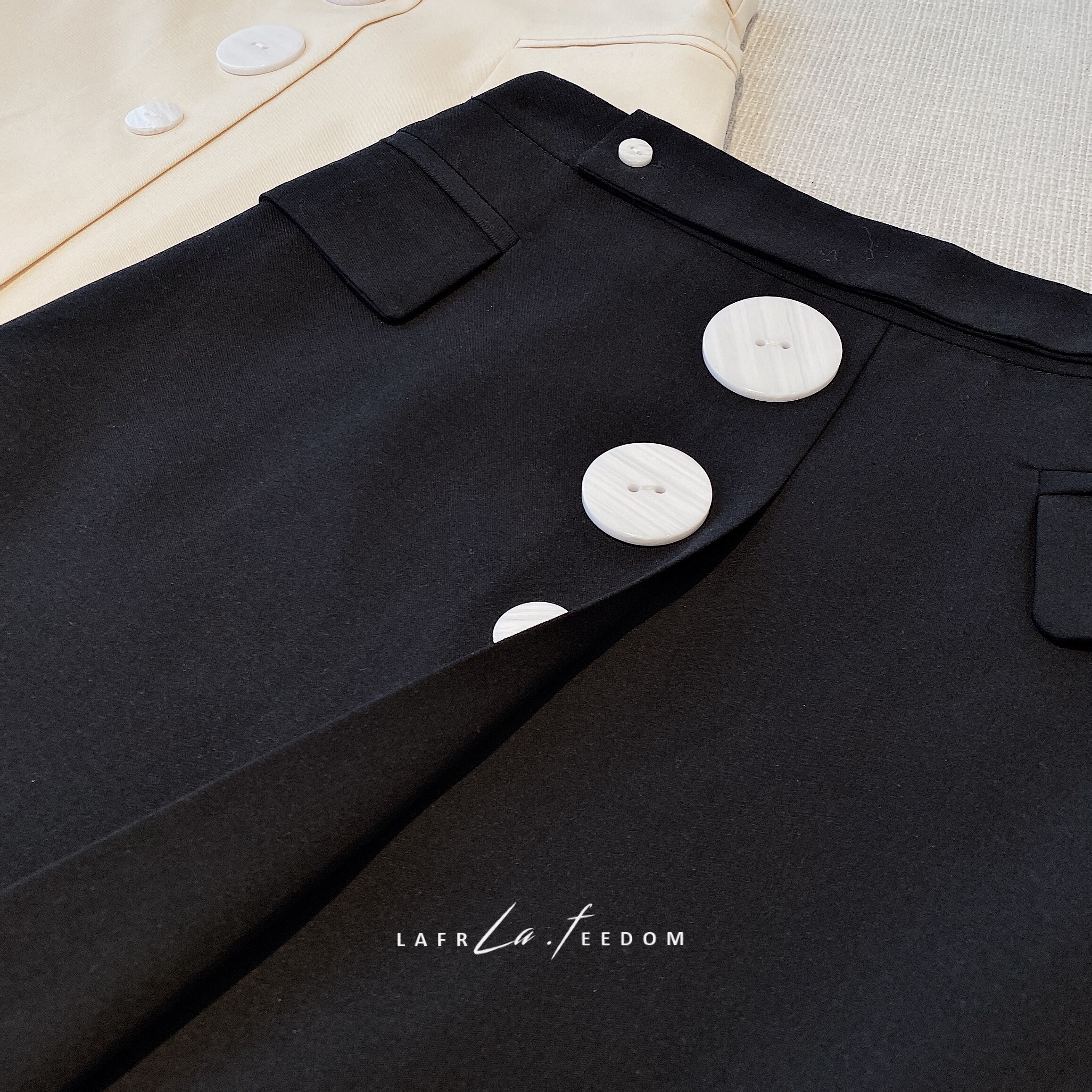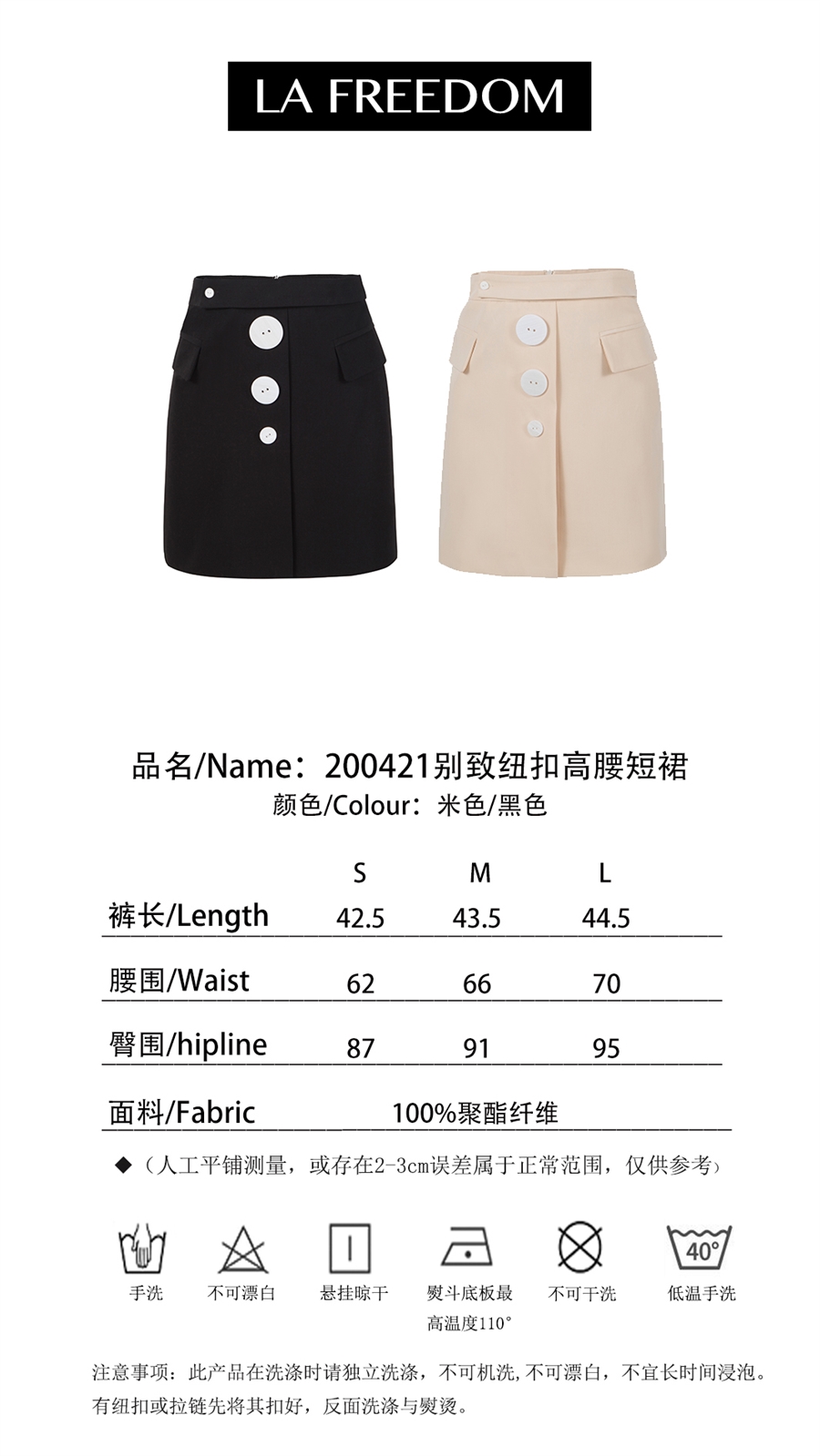 200421别致纽扣高腰短裙