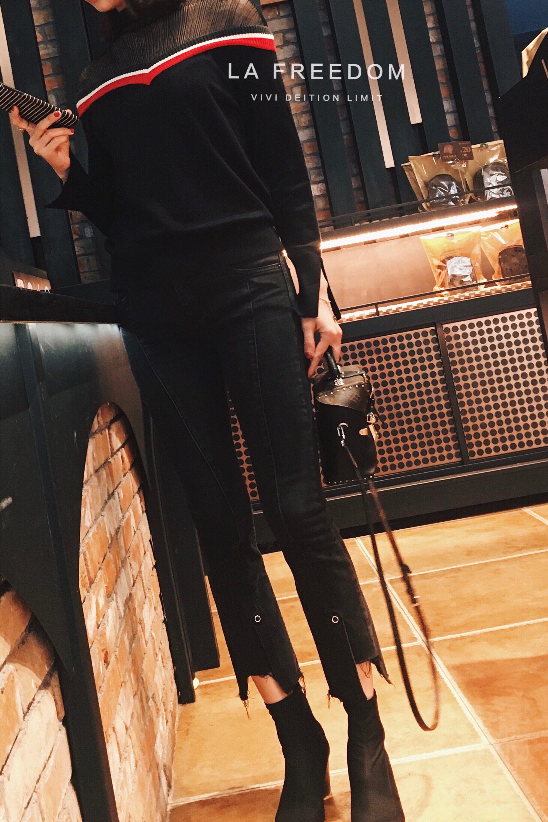 叉口打底牛仔裤
