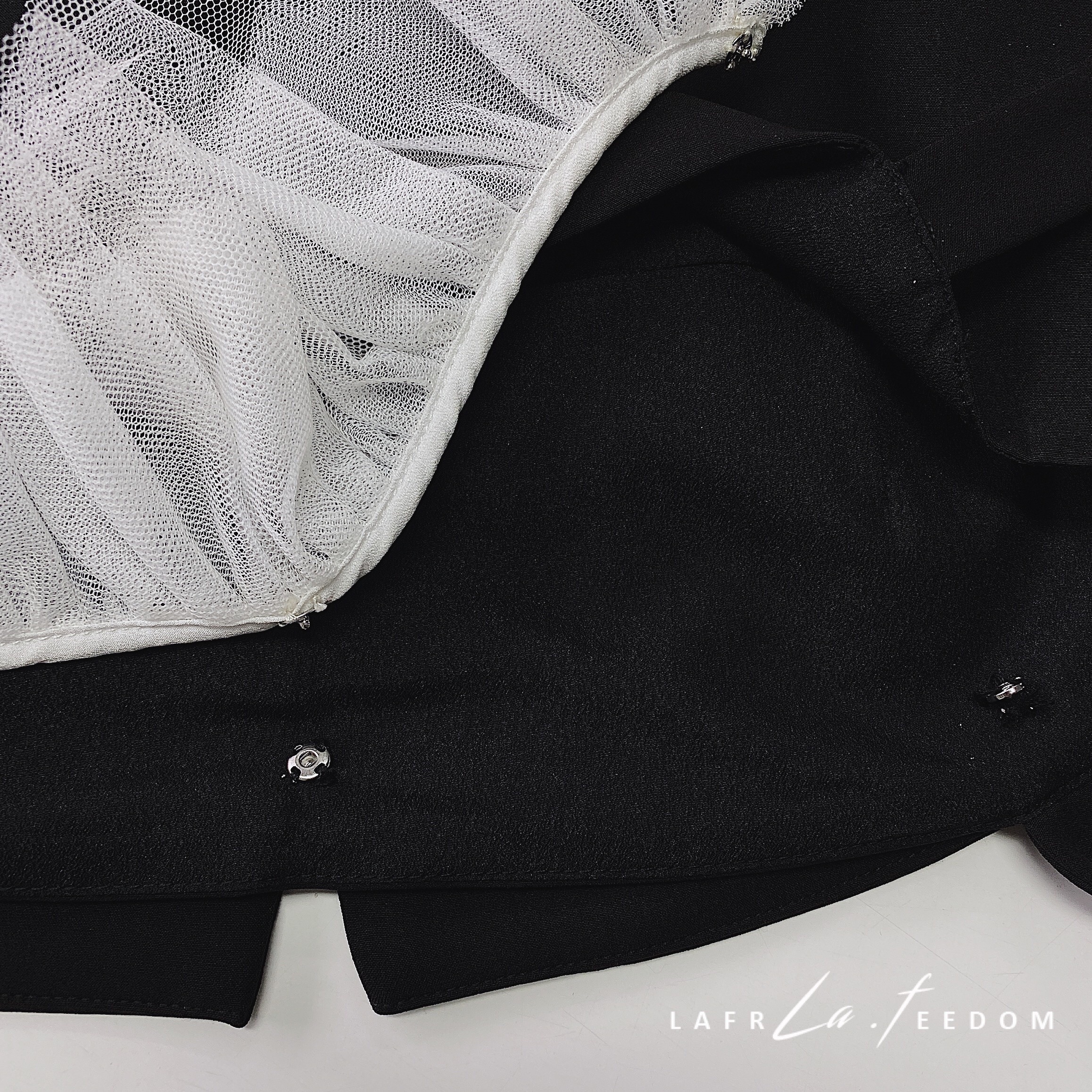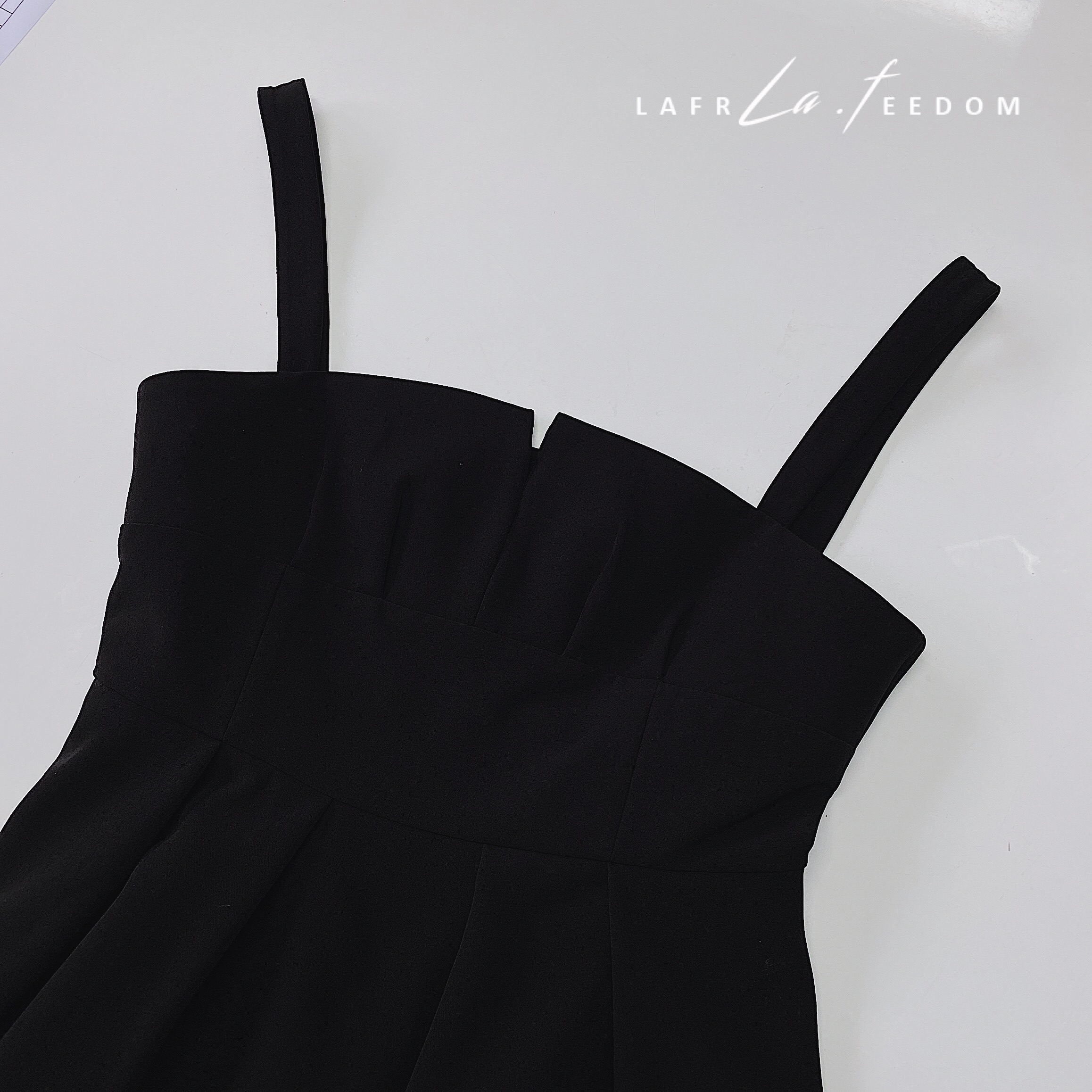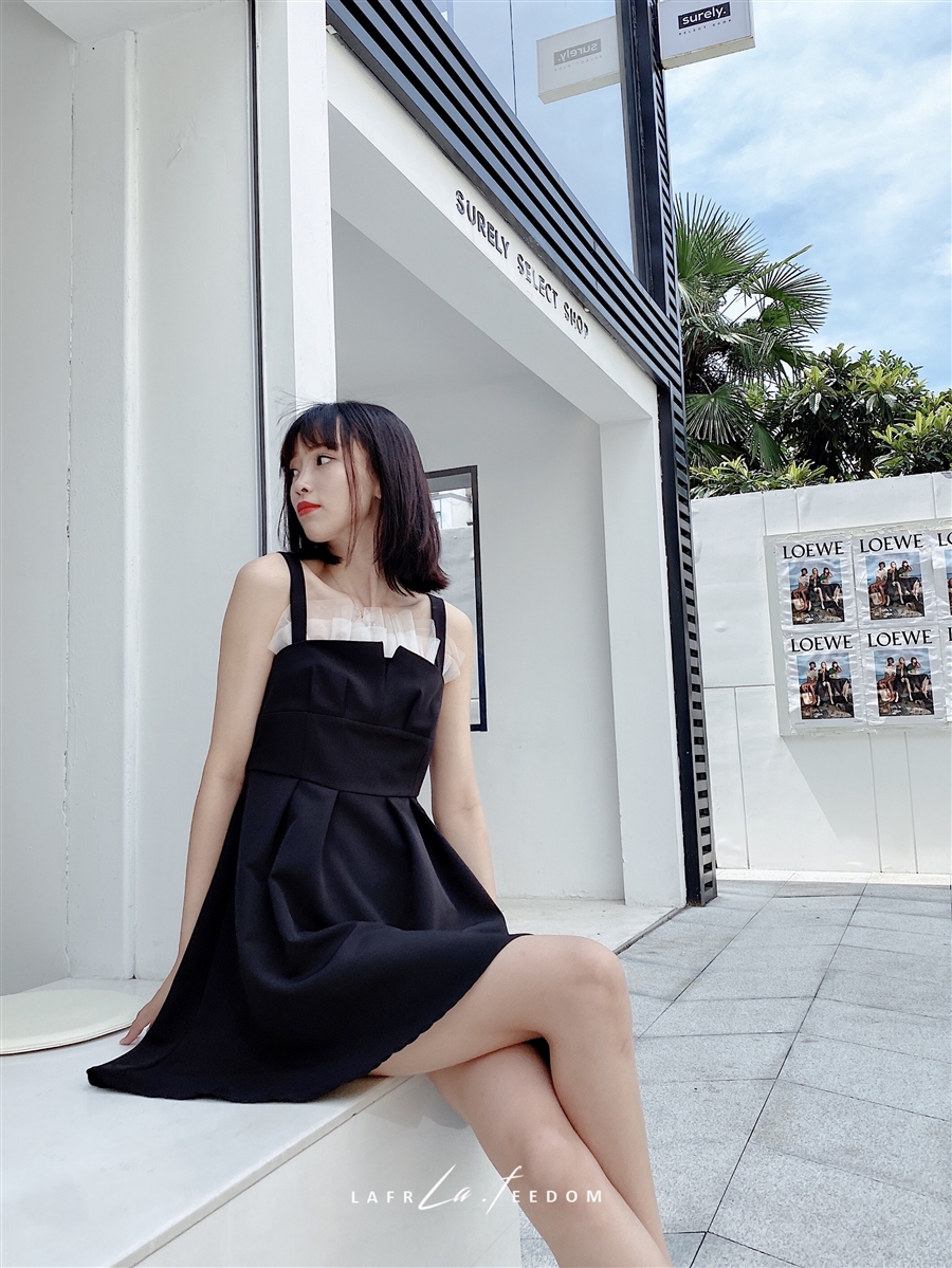200630拼纱吊带小黑裙