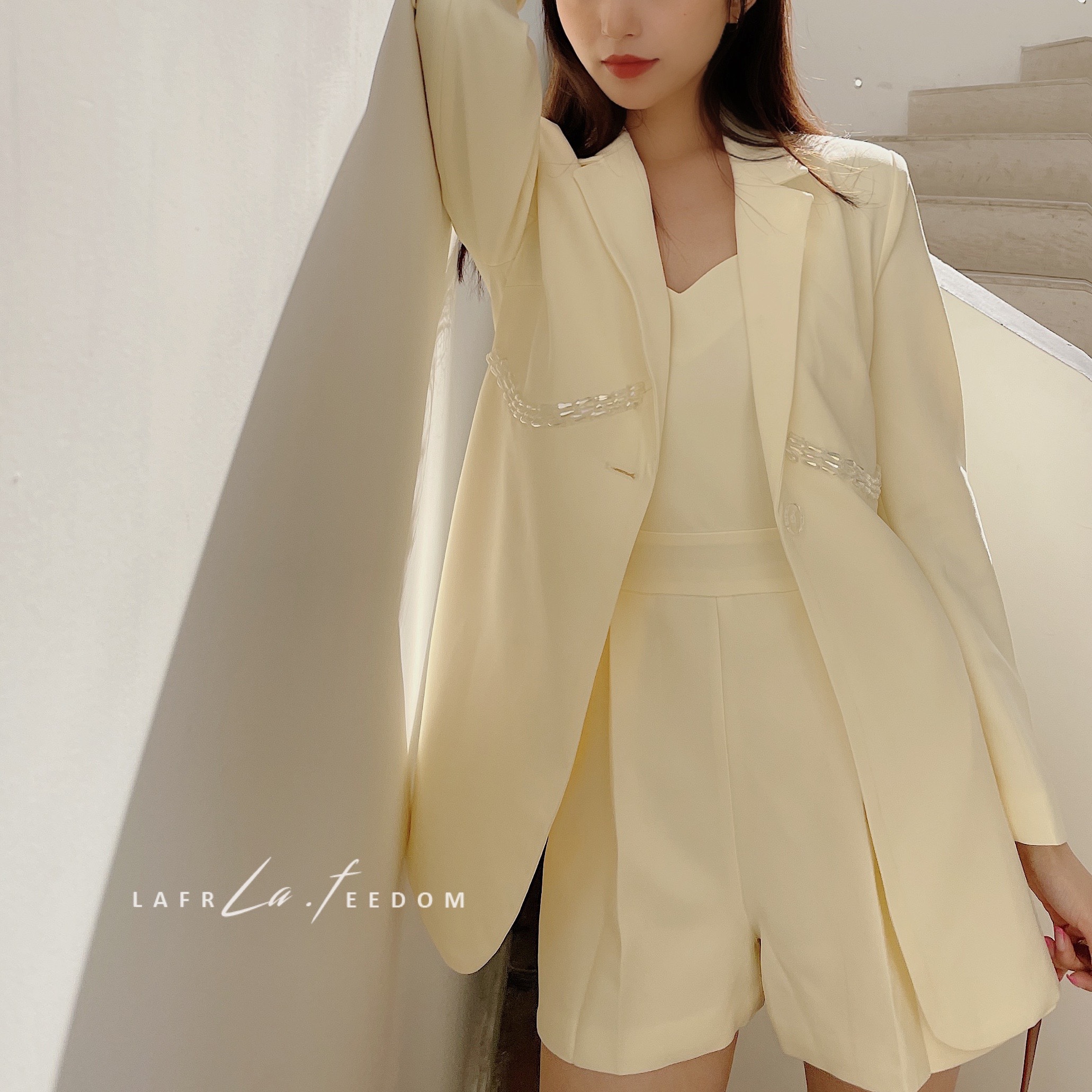 LA210308 水晶珠串西服背心连体裤两件套