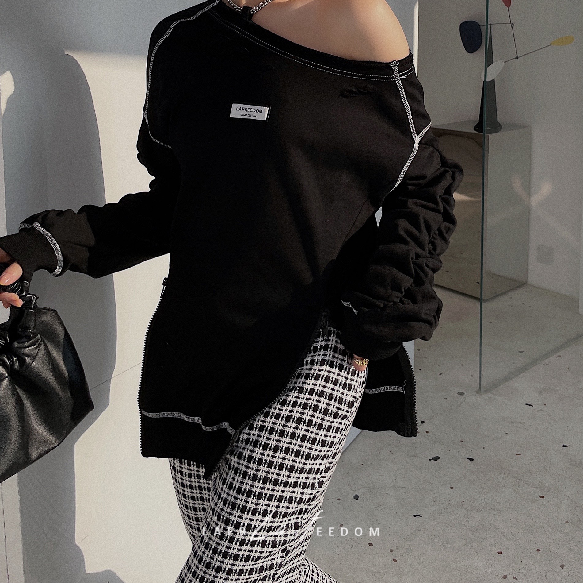 LA210321LAF颈链露肩小众卫衣