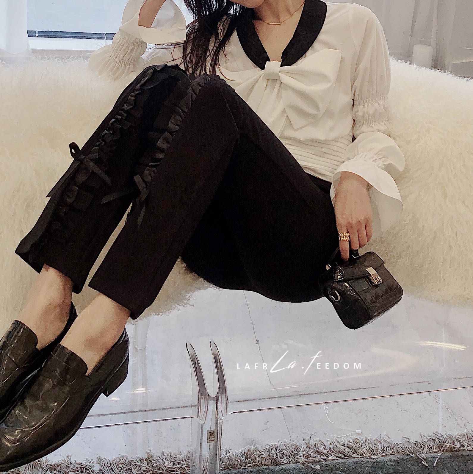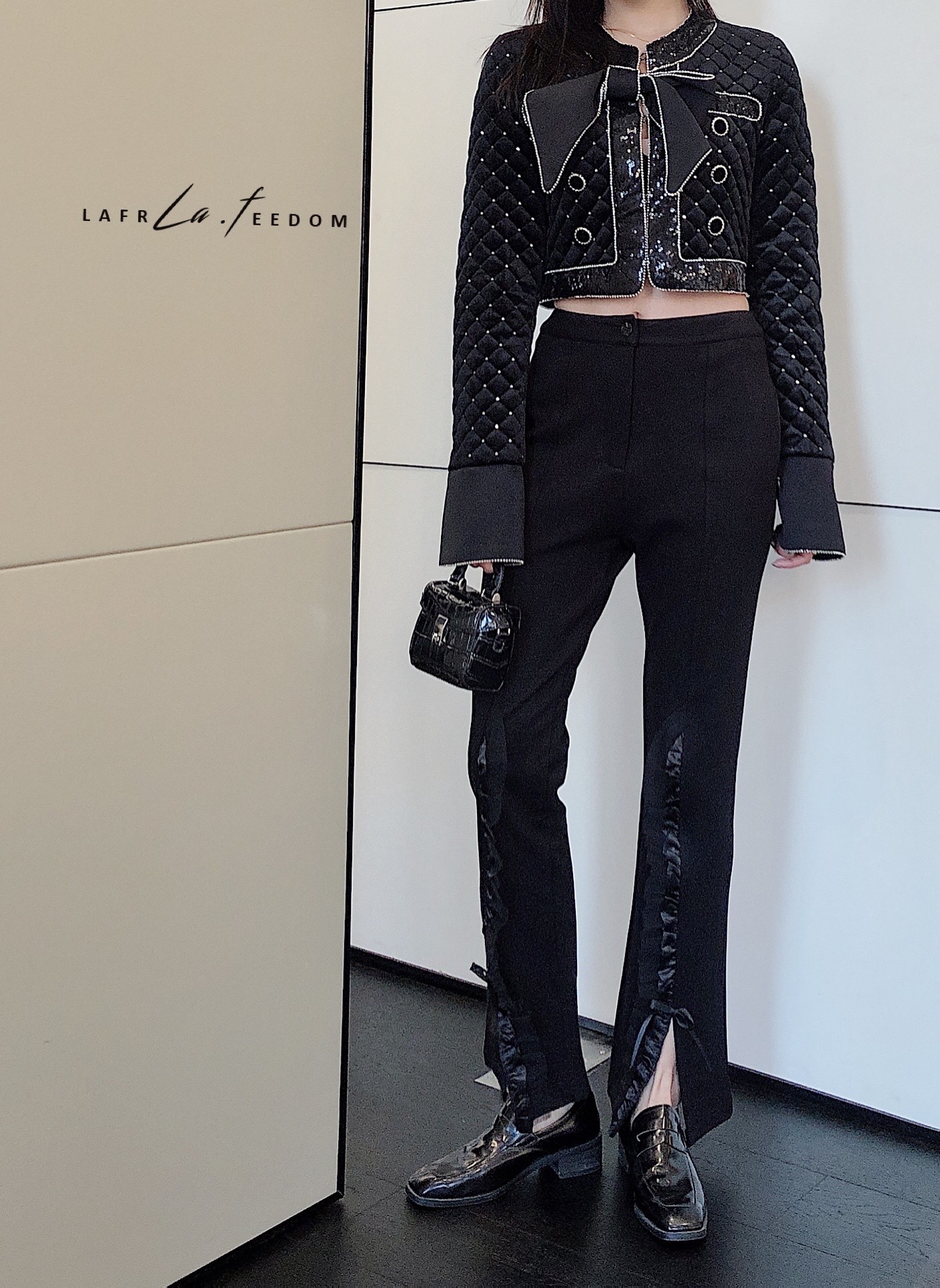 LA210110花边开衩设计感喇叭西装裤