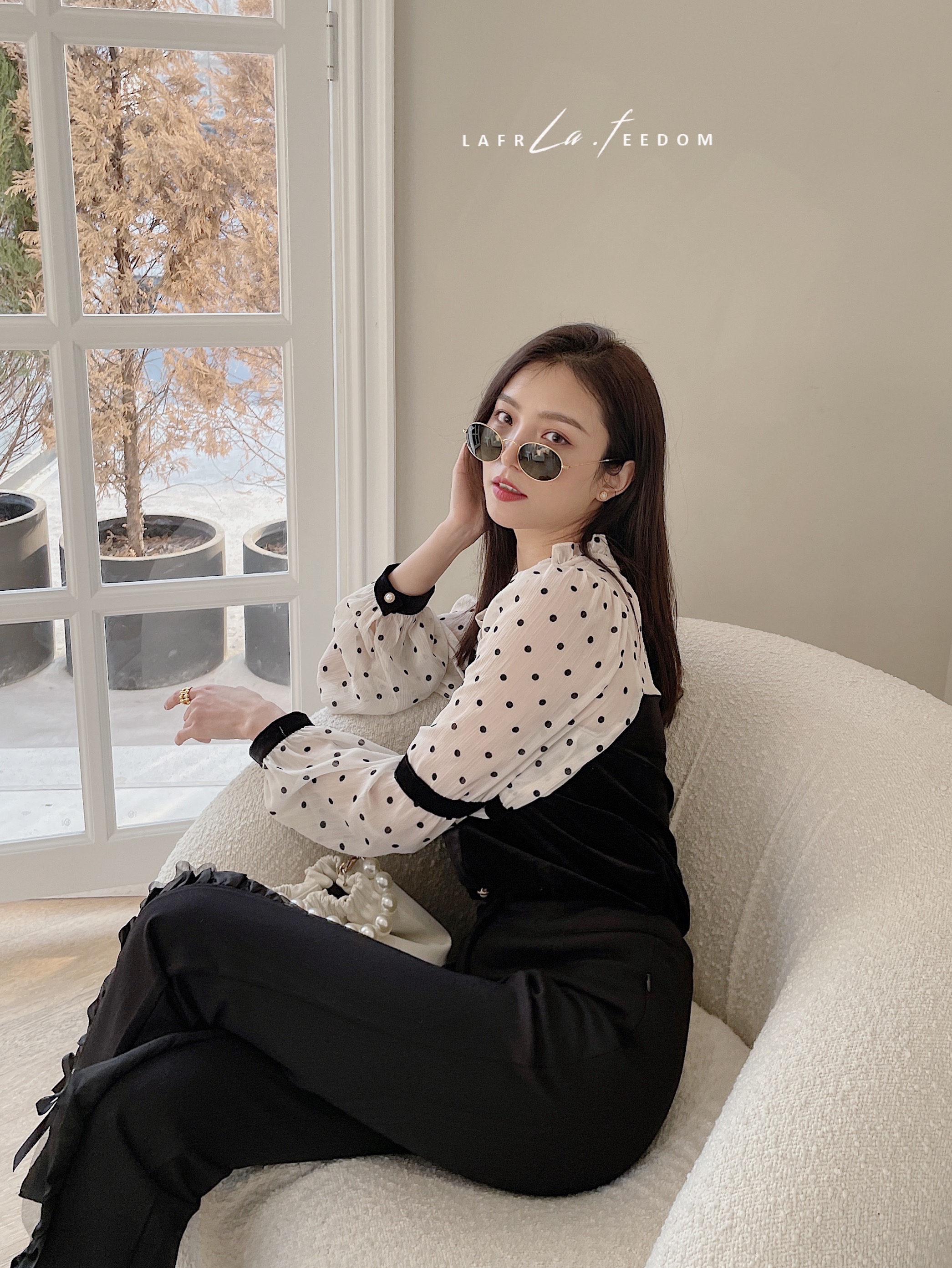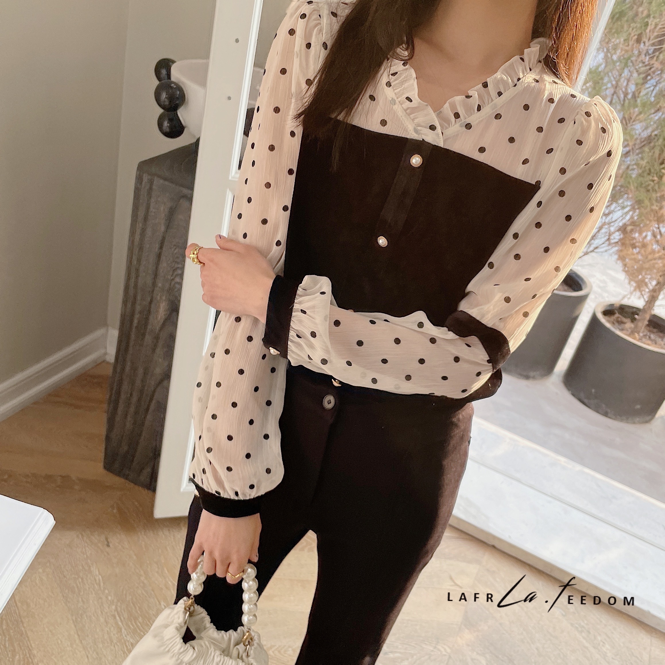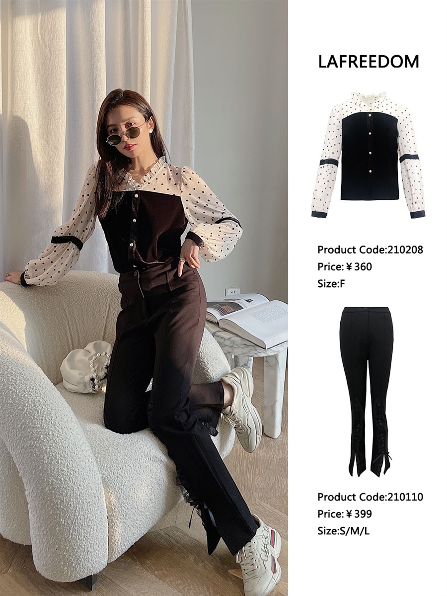 LA210208丝绒拼接复古波波上衣