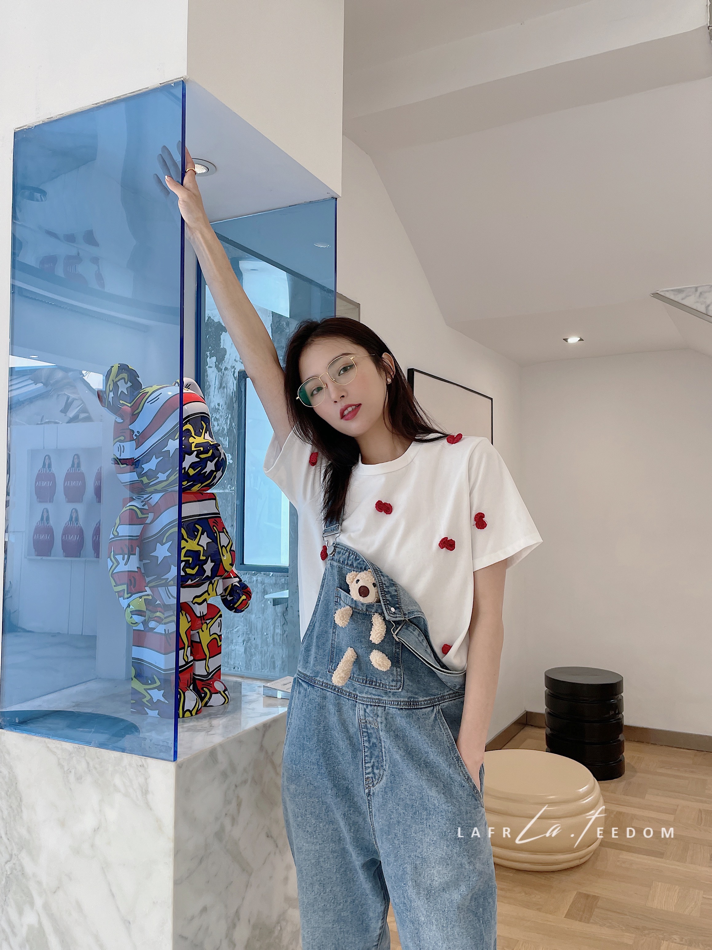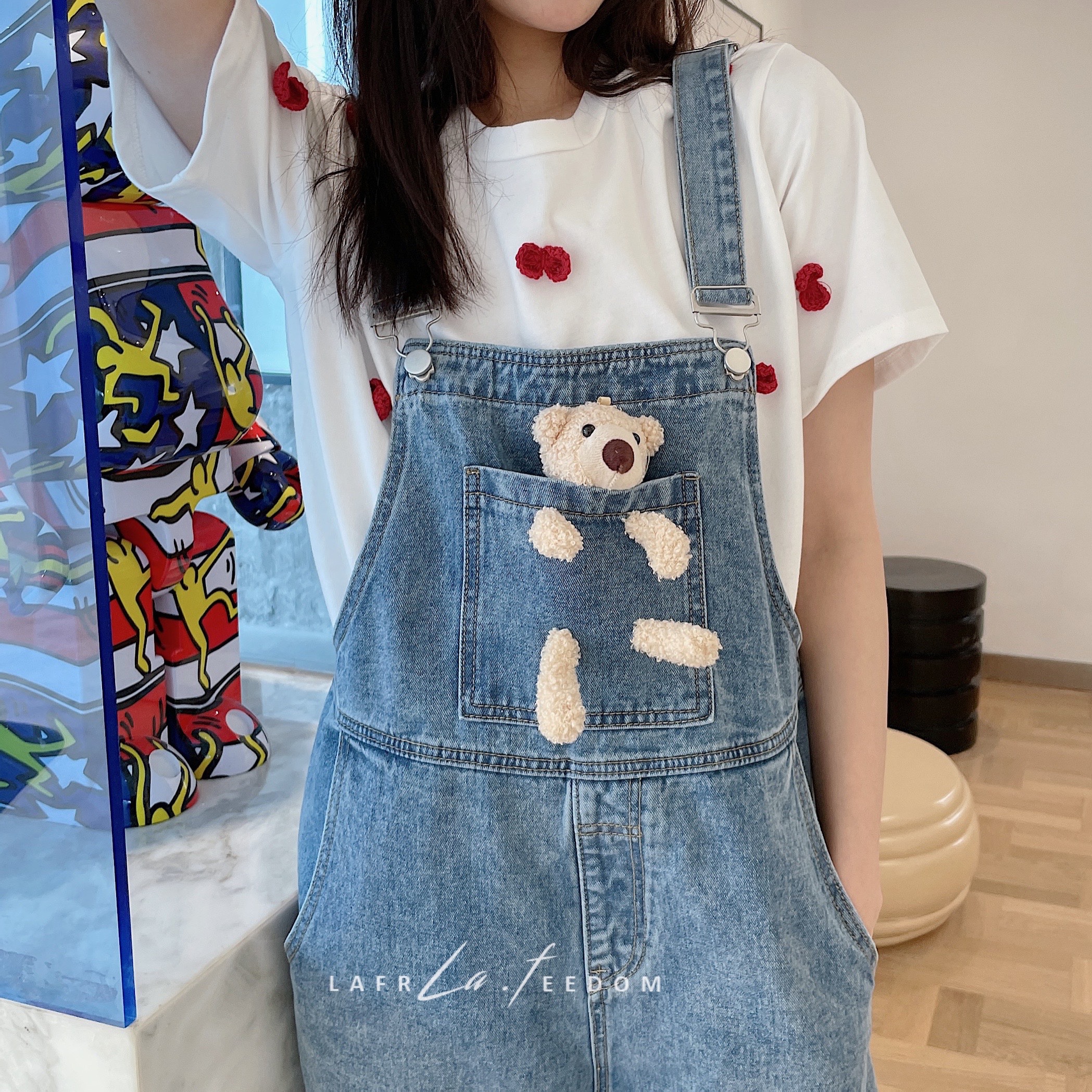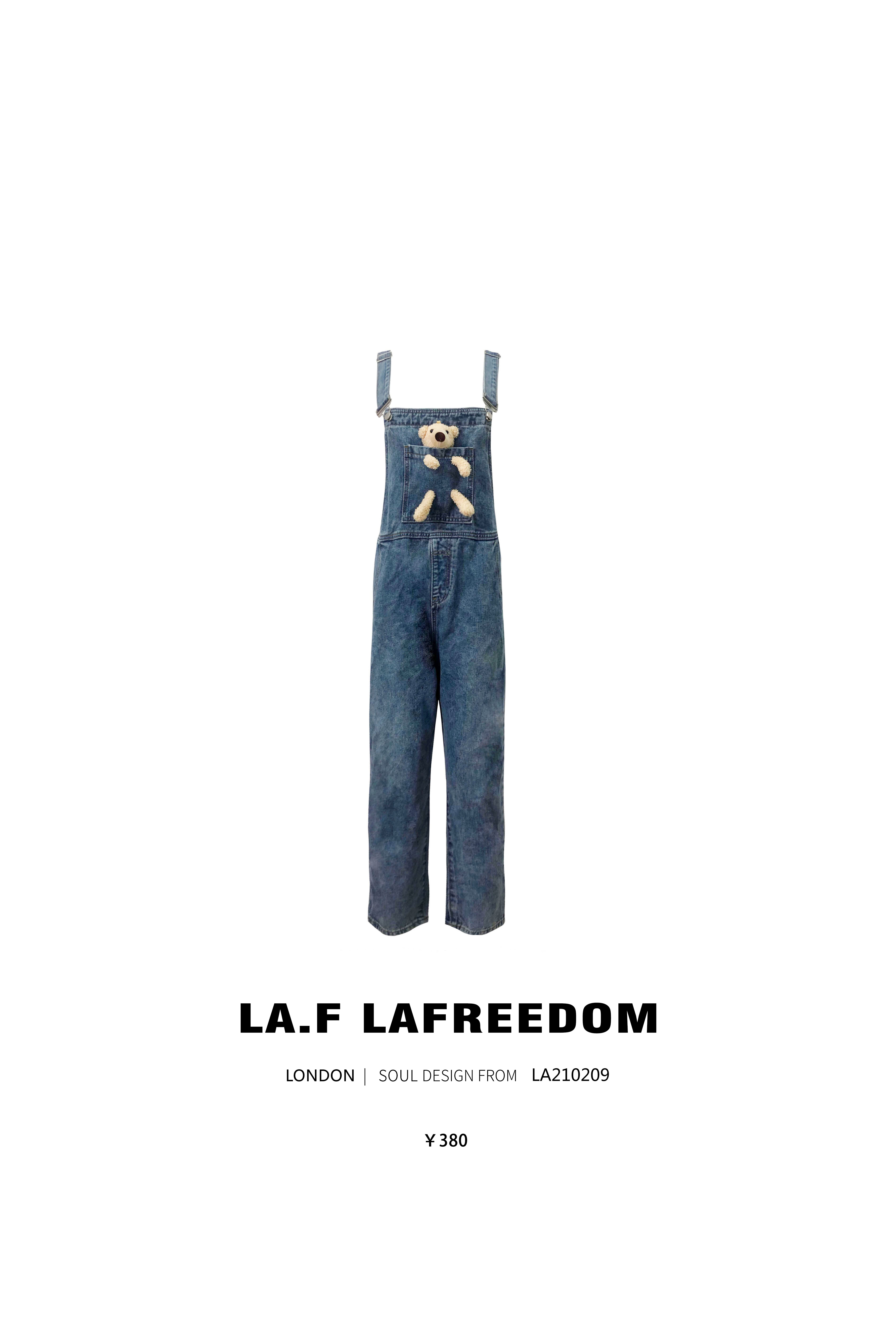 LA210209口袋熊休闲牛仔背带裤