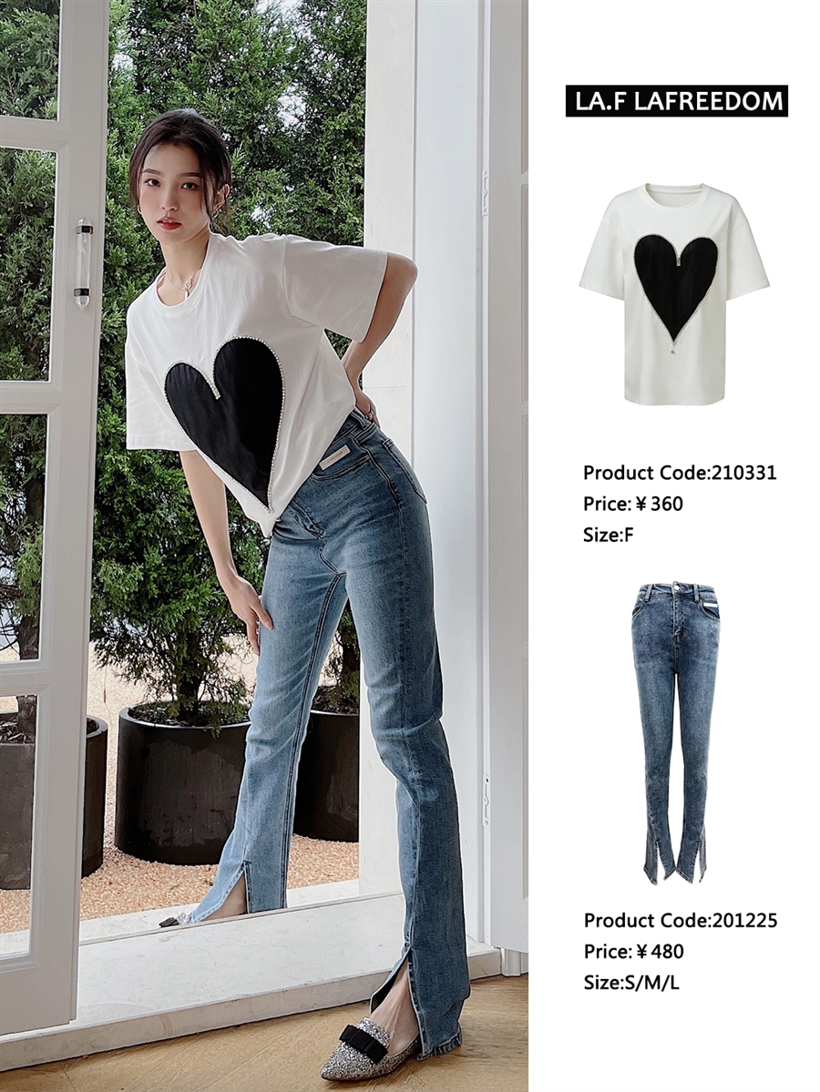 LA210331水滴钻黑桃心tee