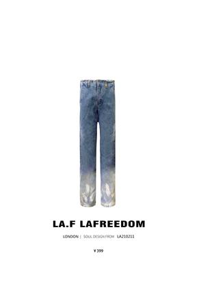 LA210211羽毛渐变毛边高腰阔腿牛仔裤