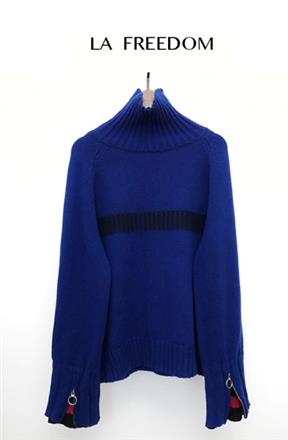 翻袖竖领大毛衣-宝蓝色