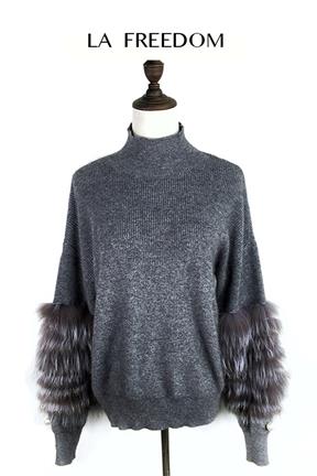 珍珠狐狸毛拼接毛衣