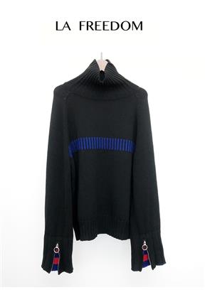 翻袖竖领大毛衣-黑色