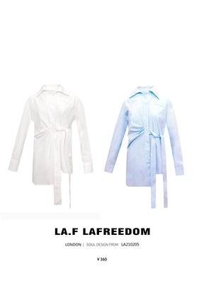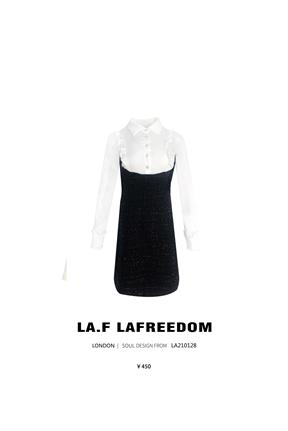 LA210128粗花呢木耳边衬衫拼接连衣裙