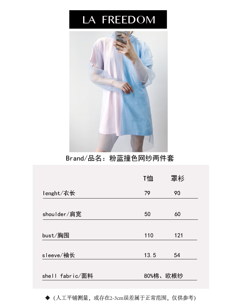 粉蓝撞色网纱两件套