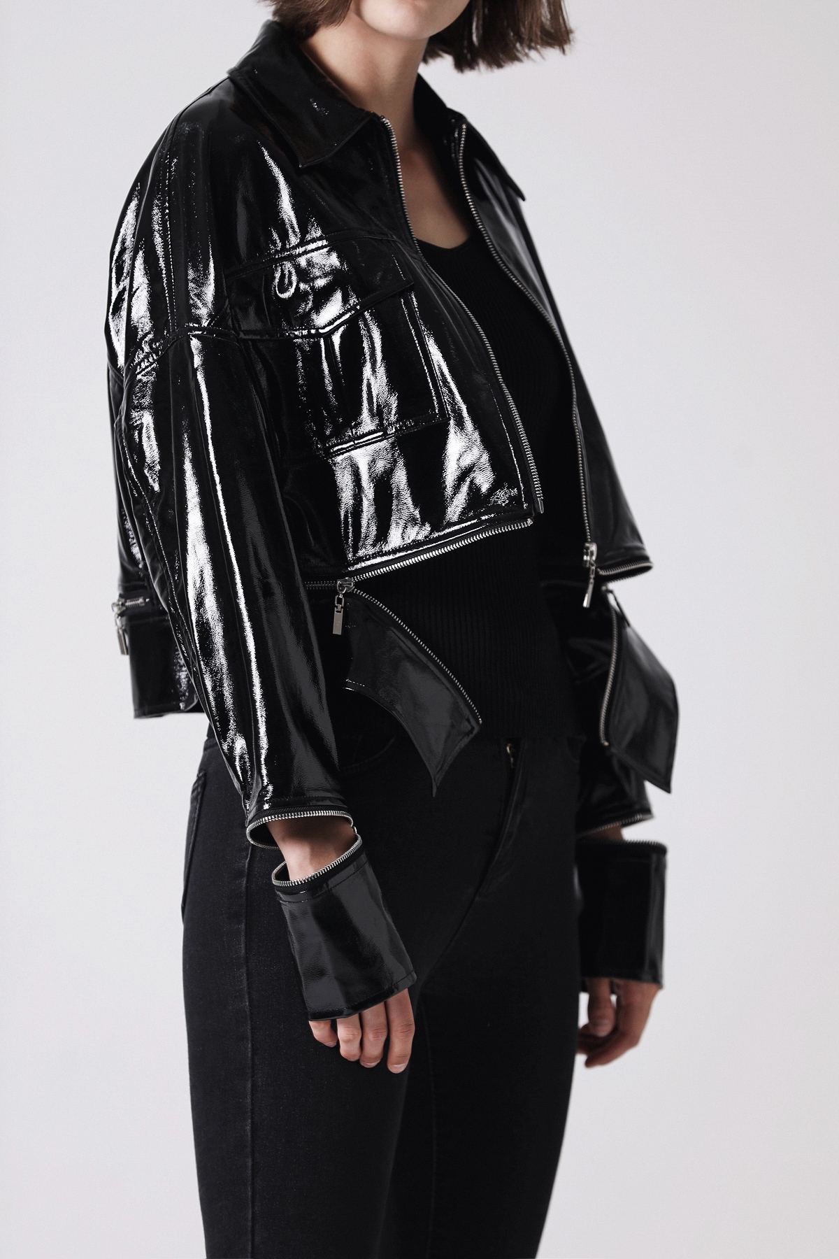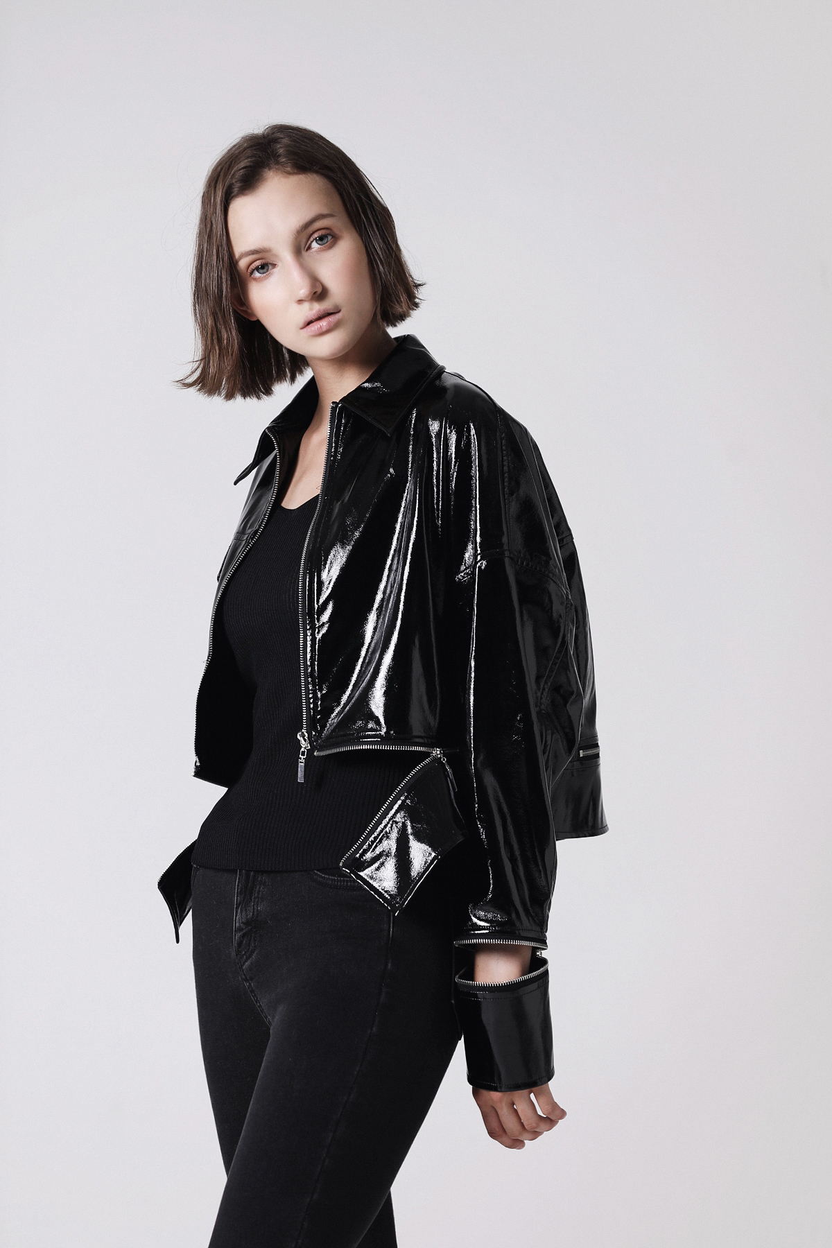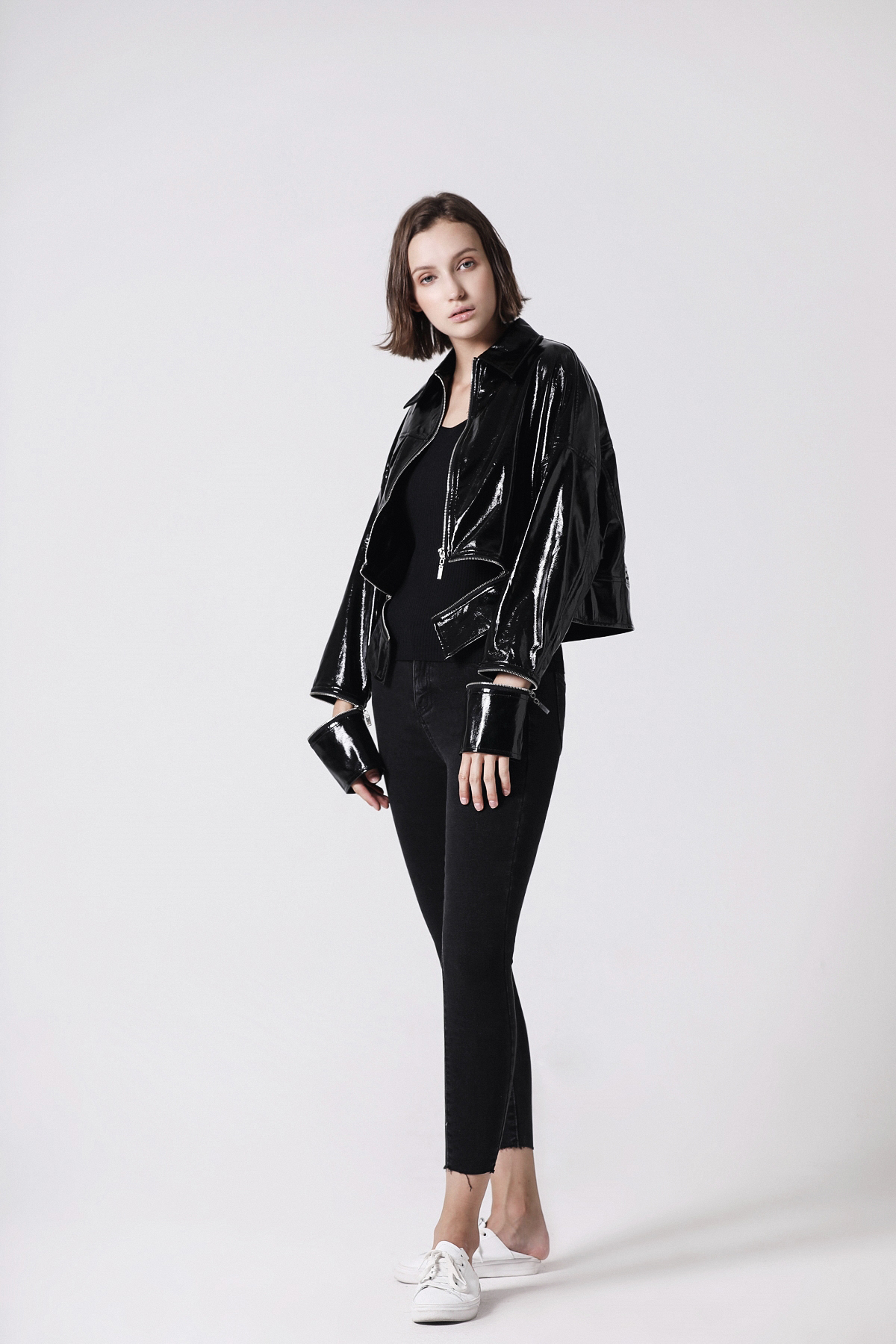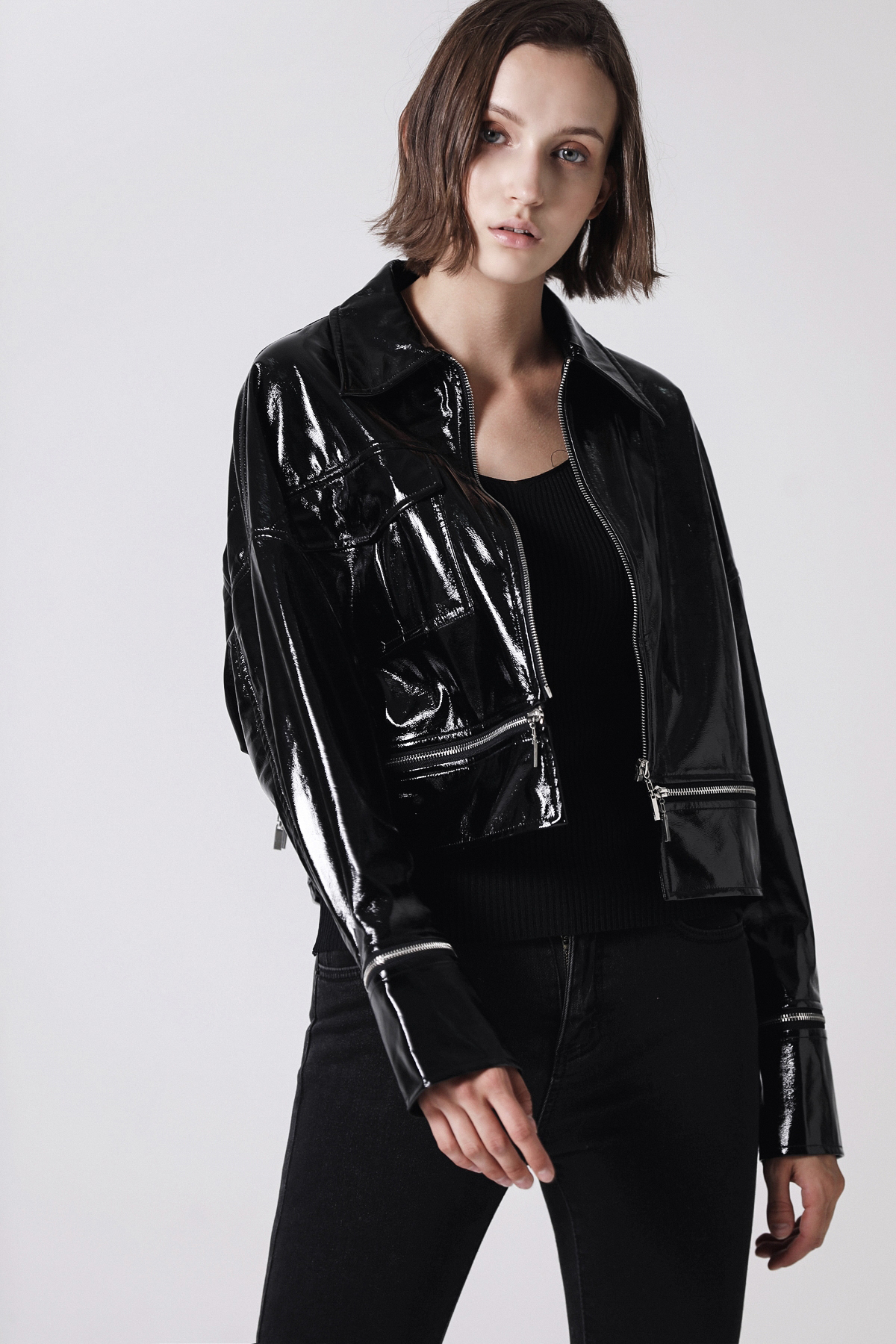 潮流亮皮外套