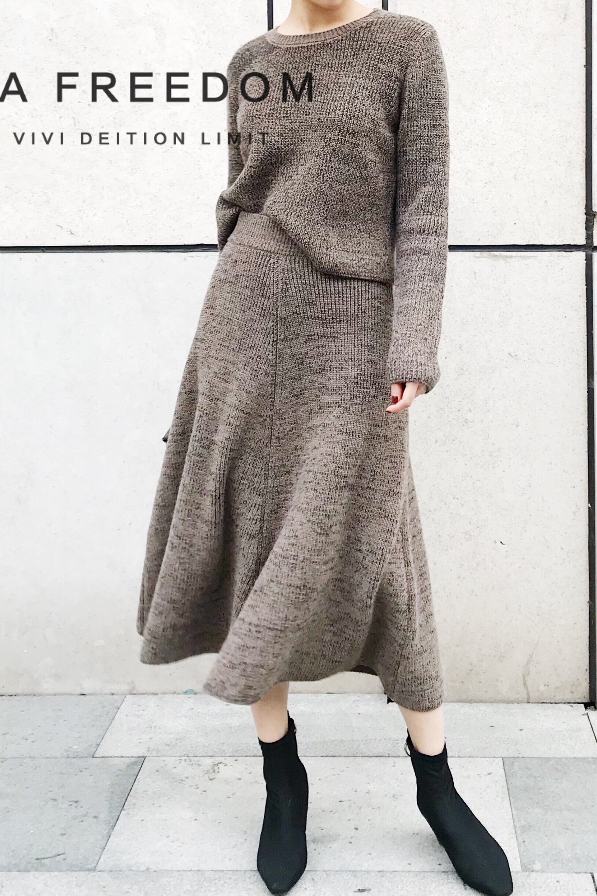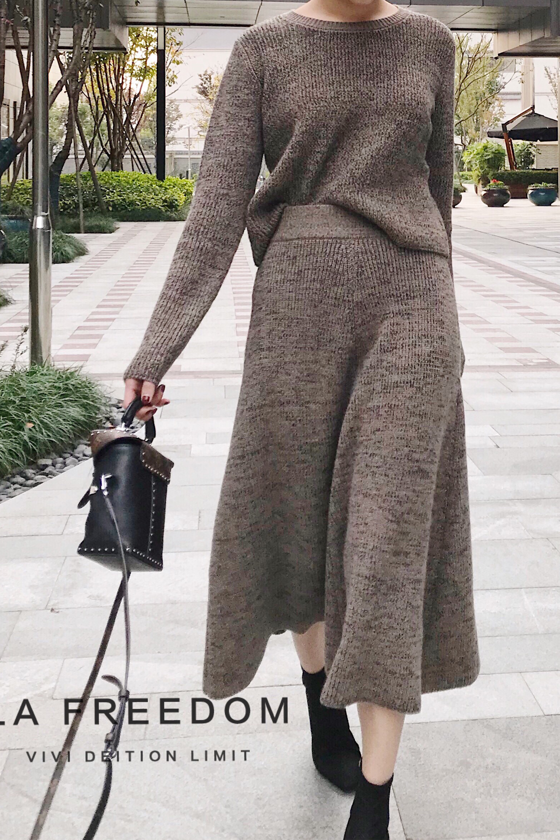 兔毛包芯高腰套装裙-土驼色