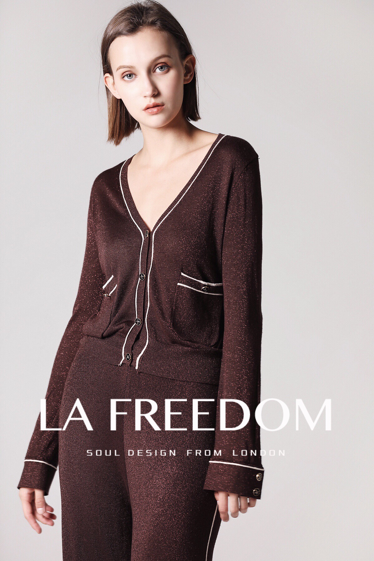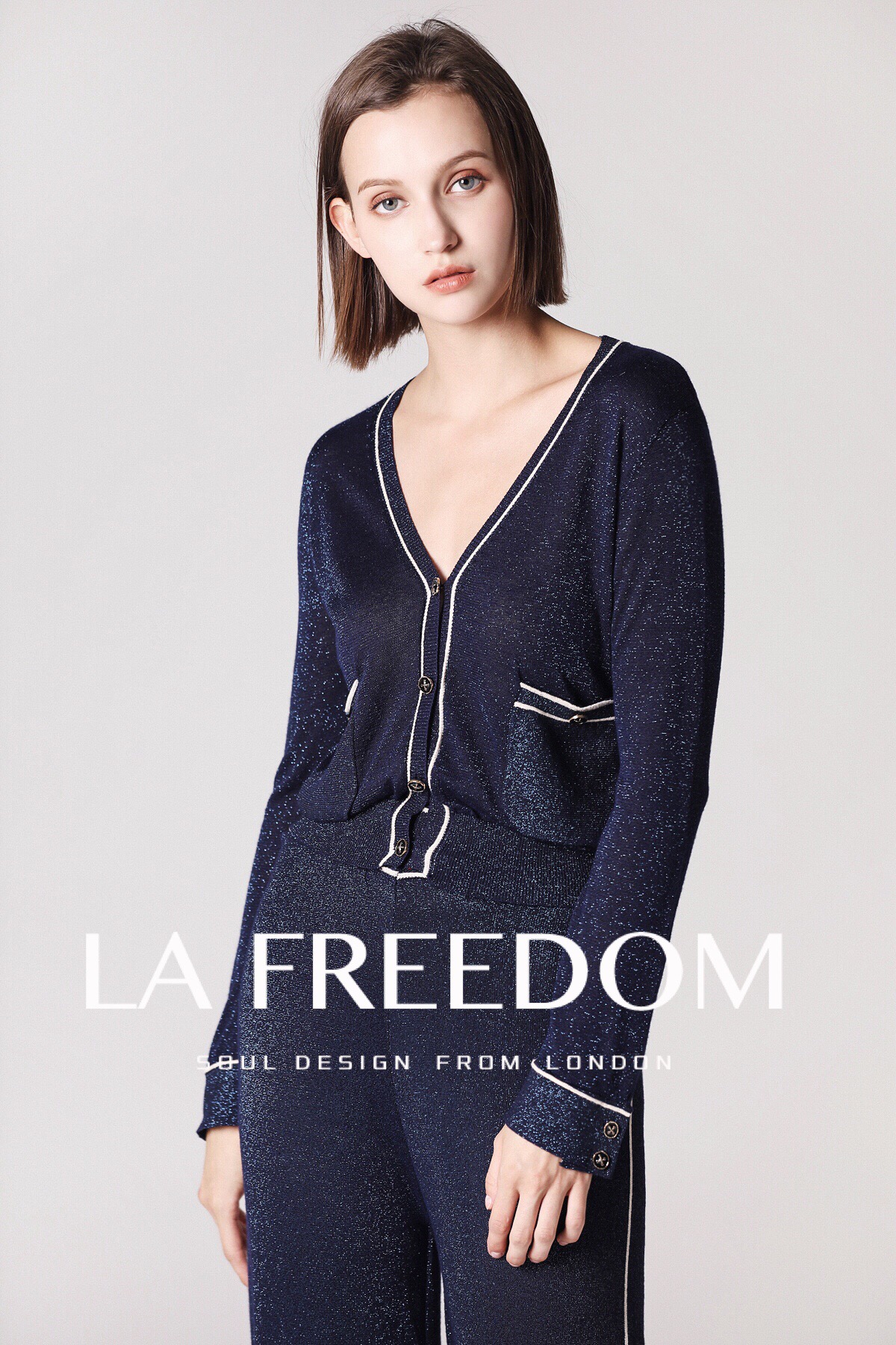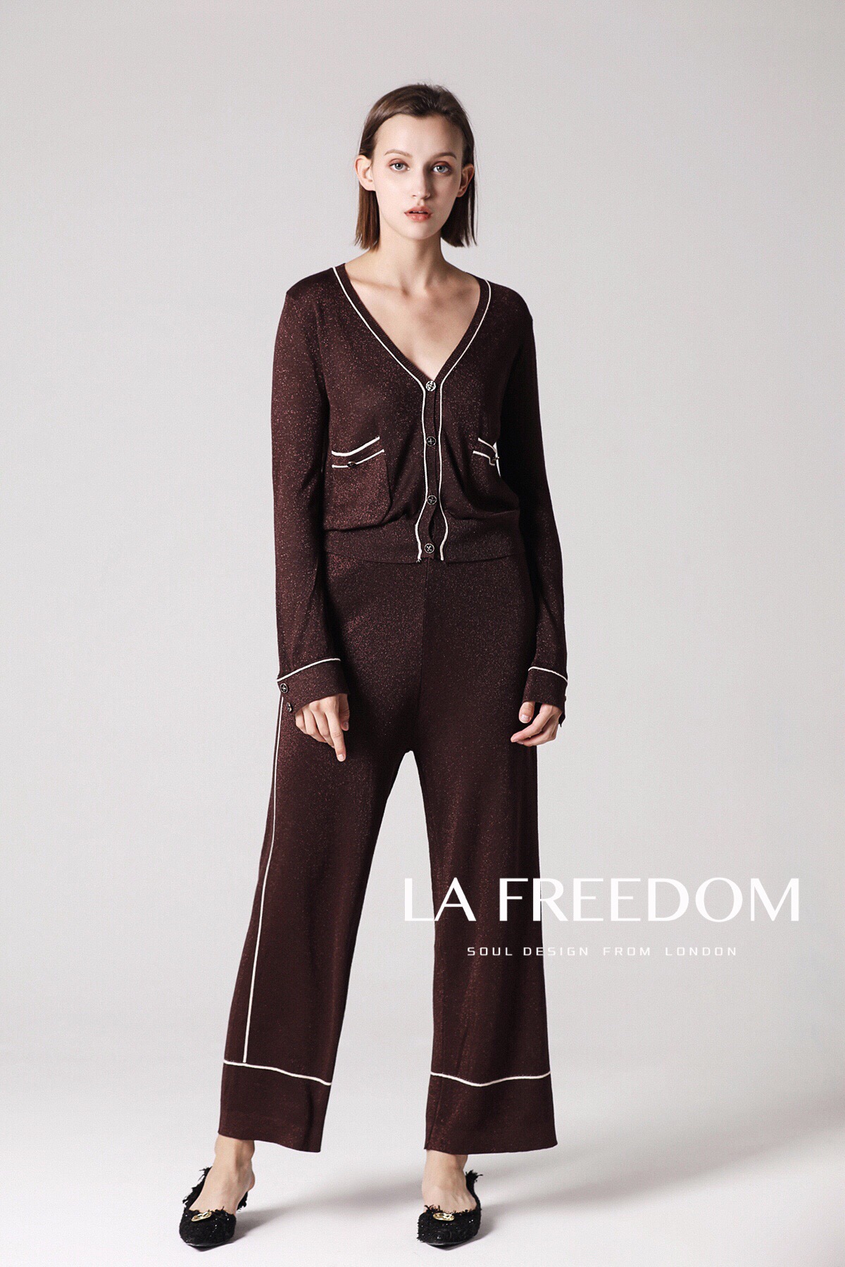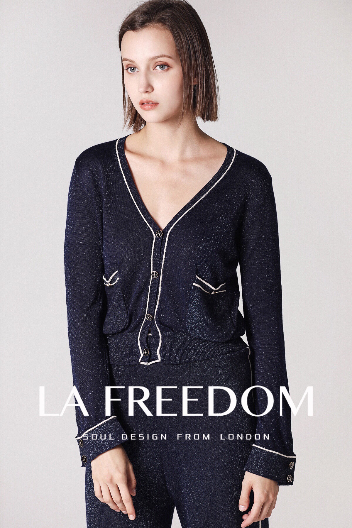 180914V领金线针织套装