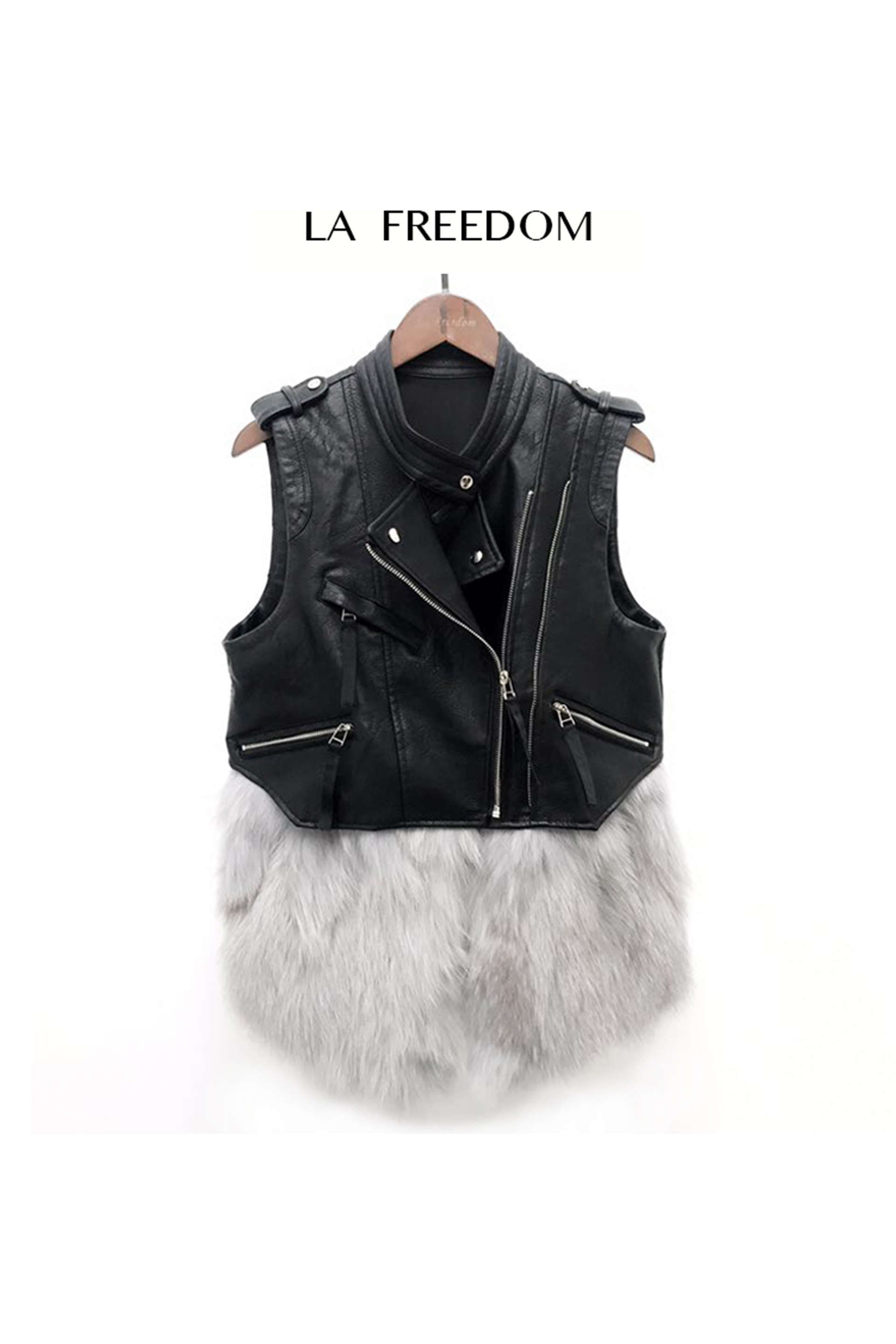 狐狸毛拼接皮马甲
