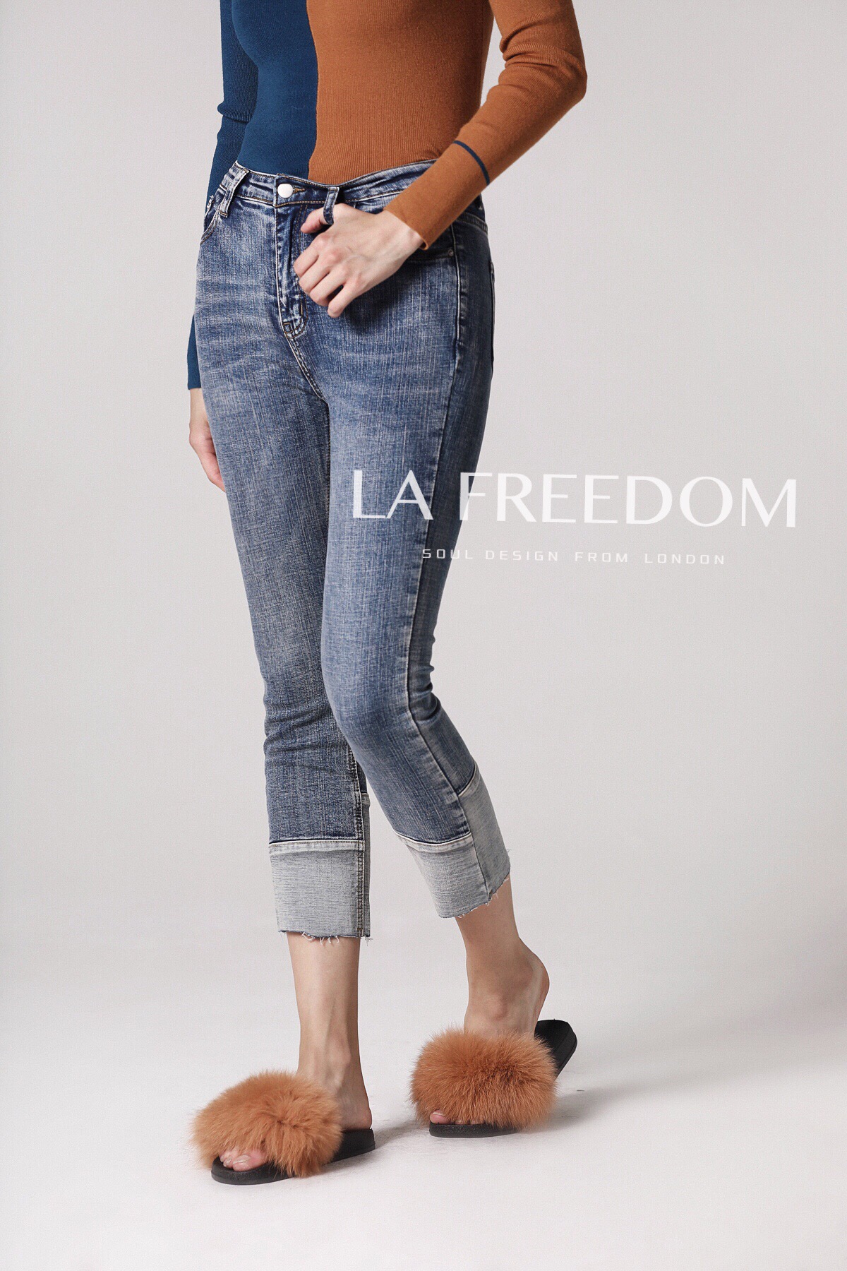 181033拼接牛仔裤