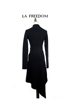 高领针织斜摆长裙