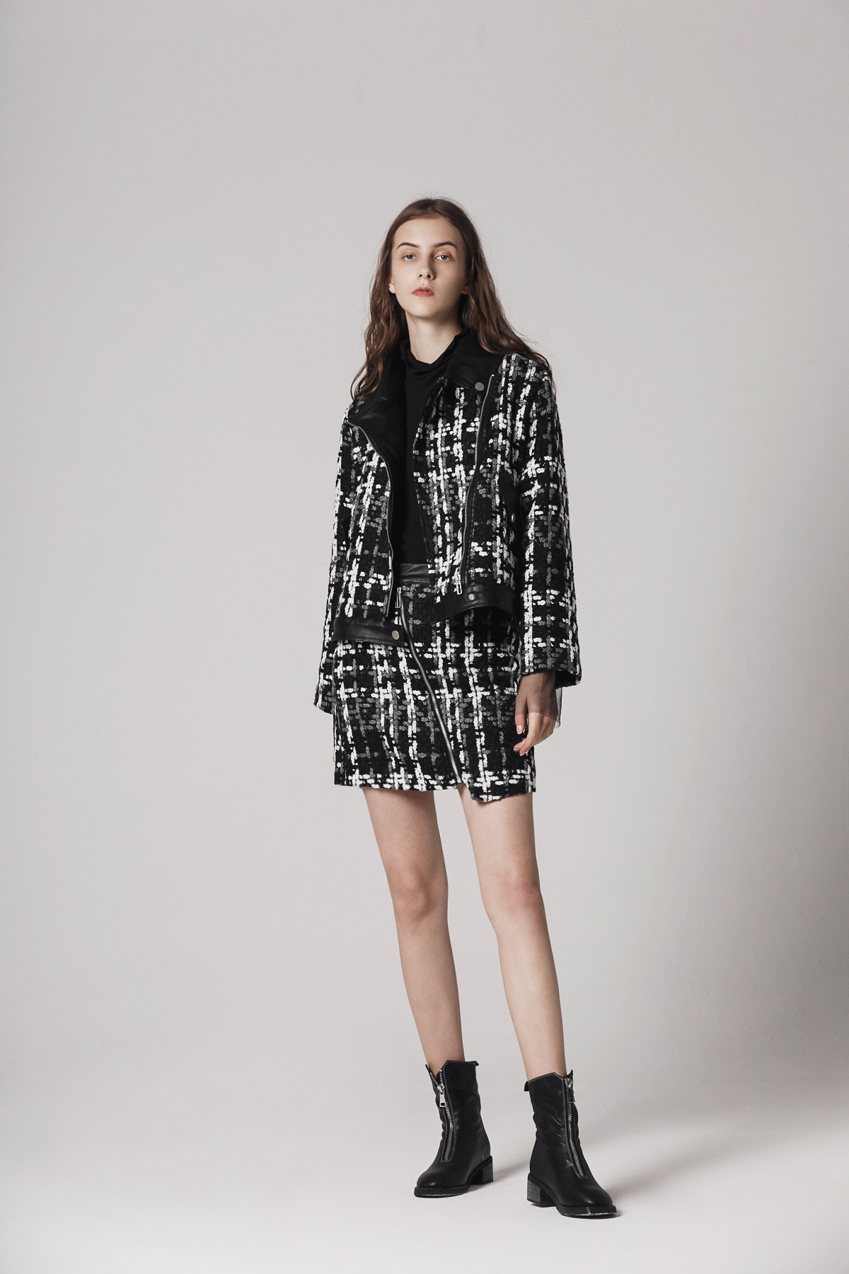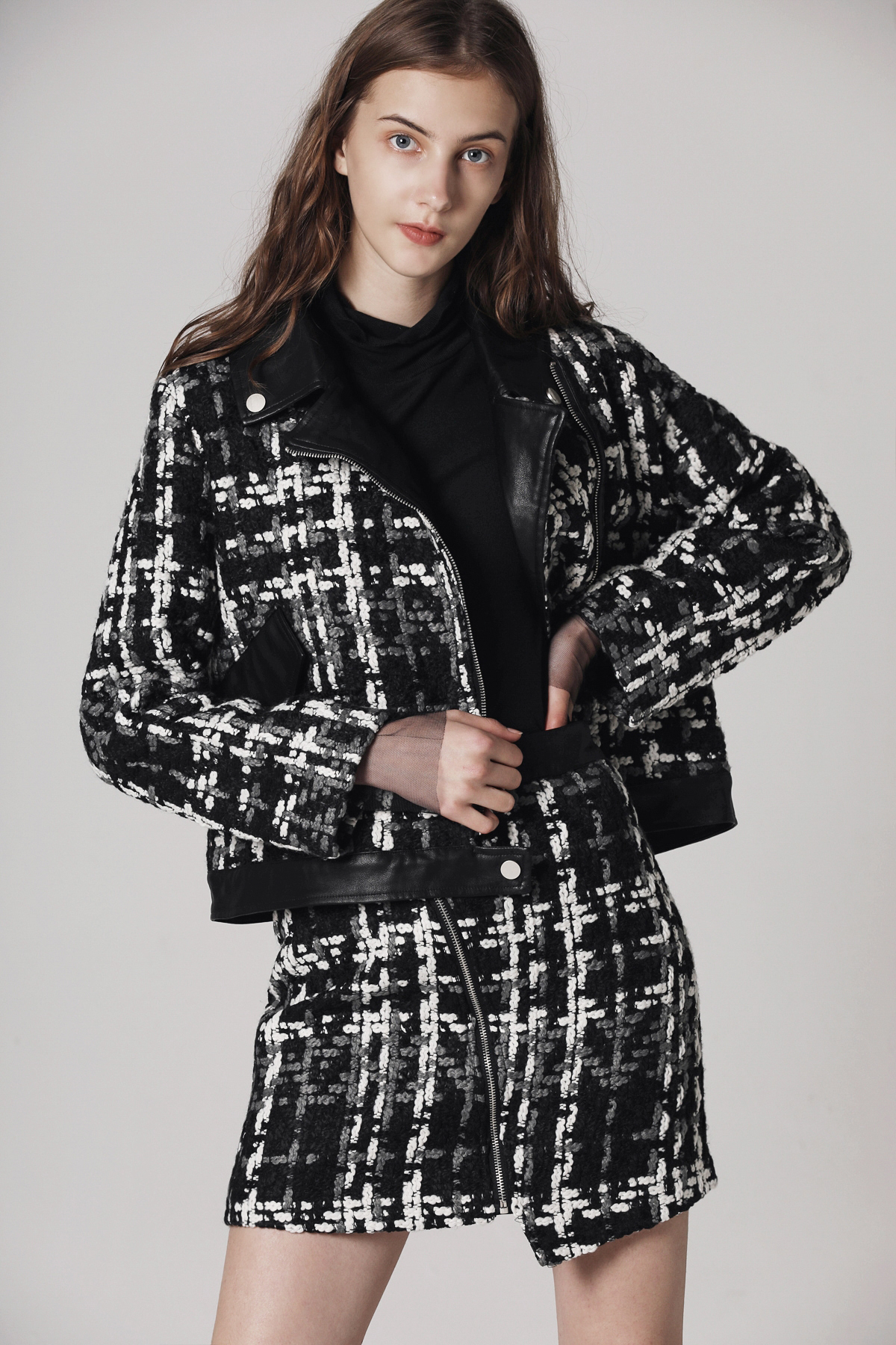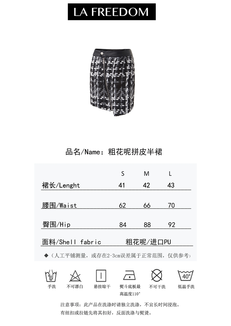 181002粗花呢拼皮裙