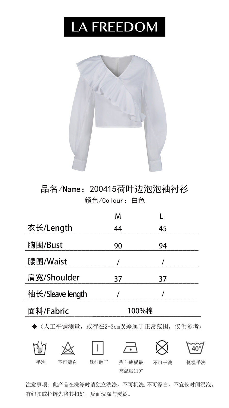 200415荷叶边泡泡袖衬衫