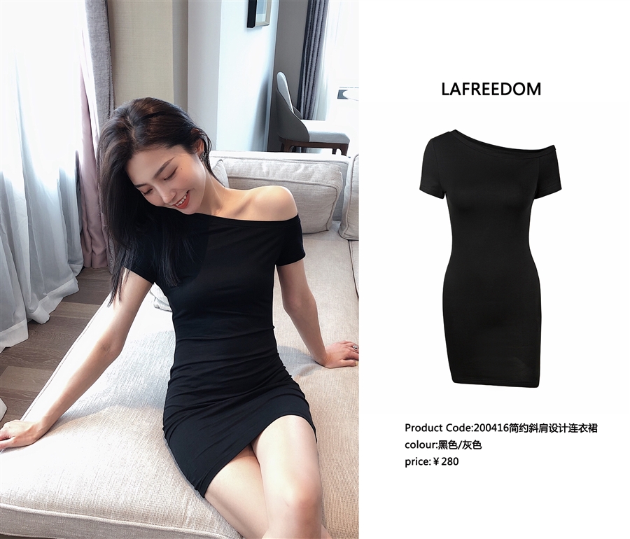 200416简约斜肩设计连衣裙