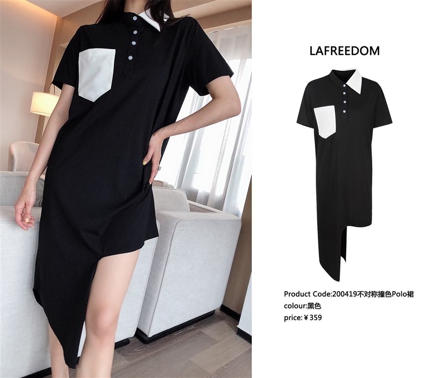 200419不对称撞色polo裙