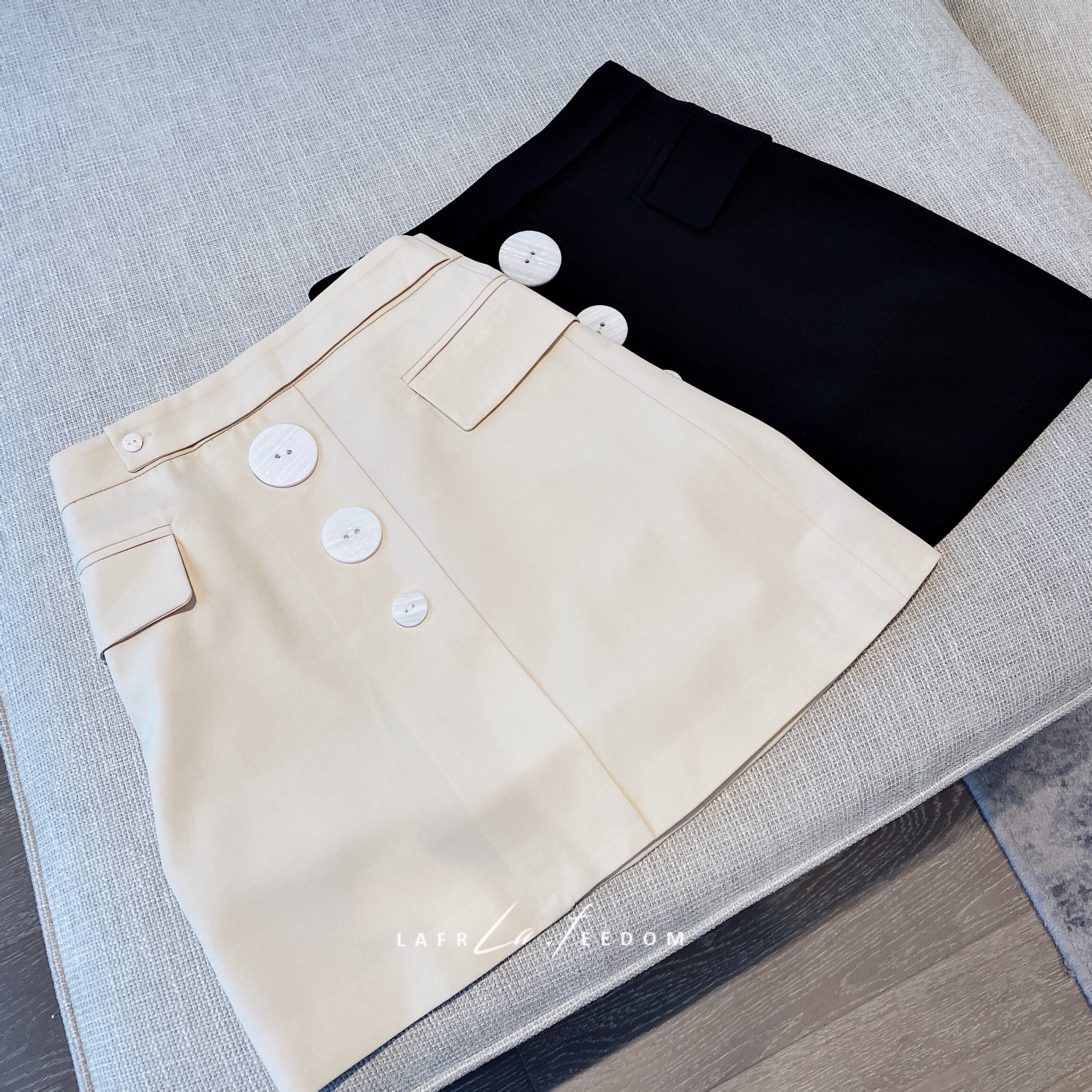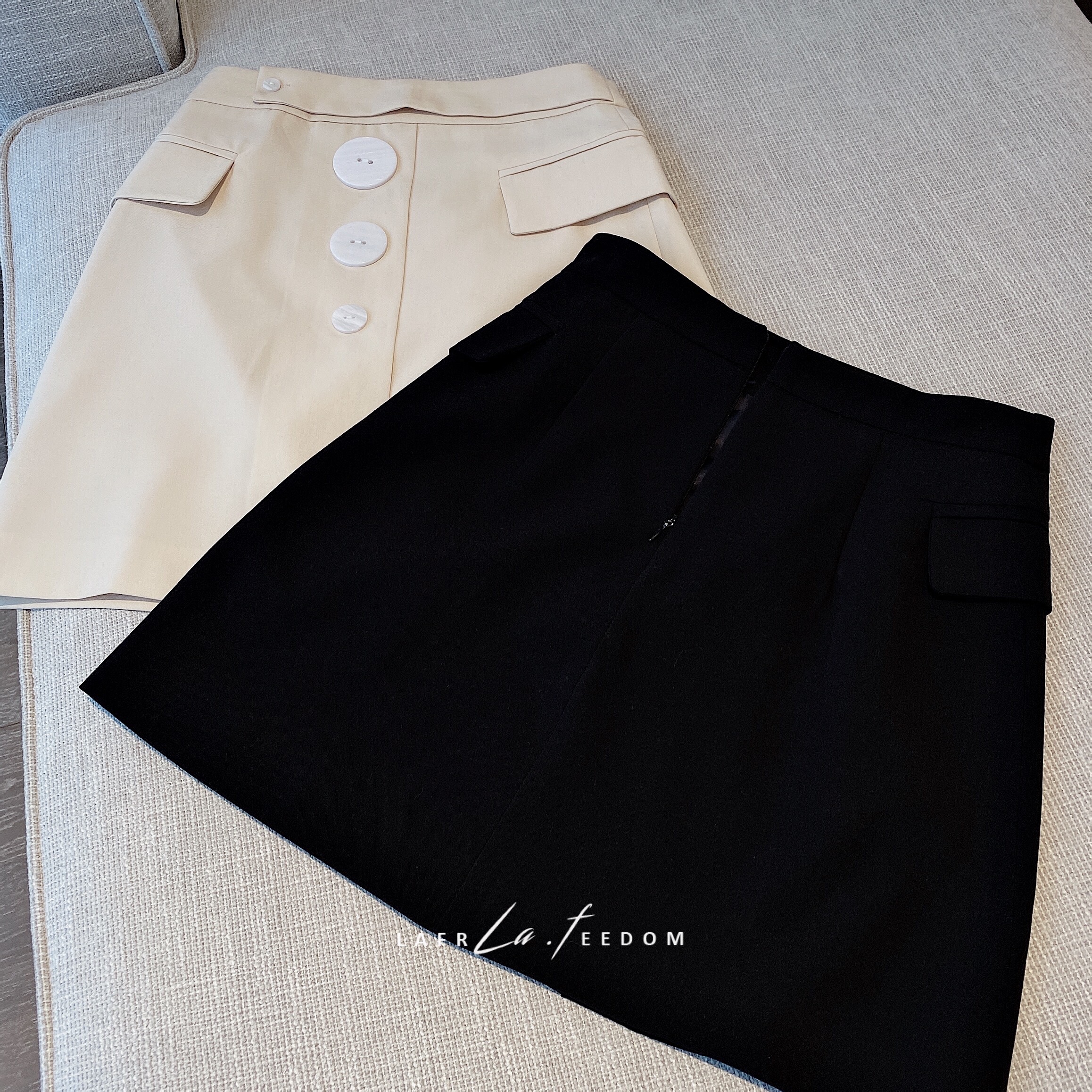200421别致纽扣高腰短裙
