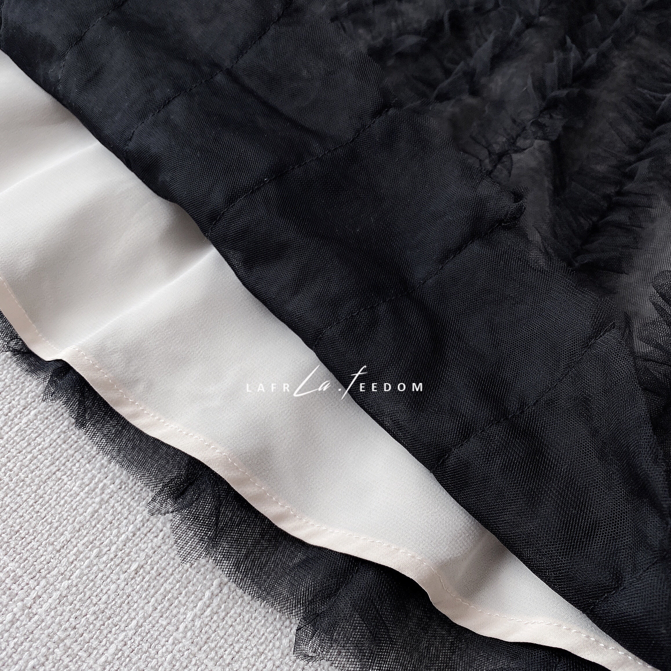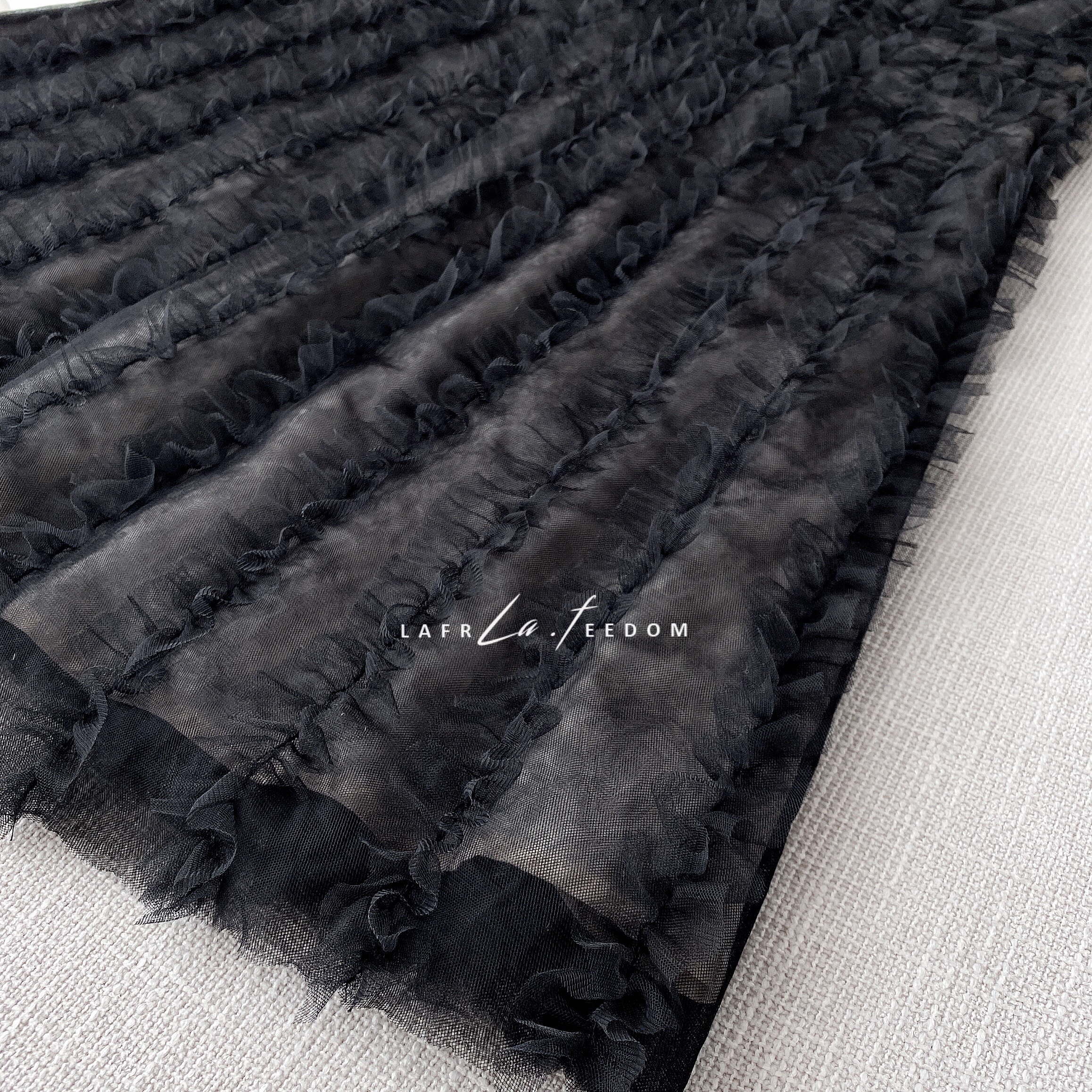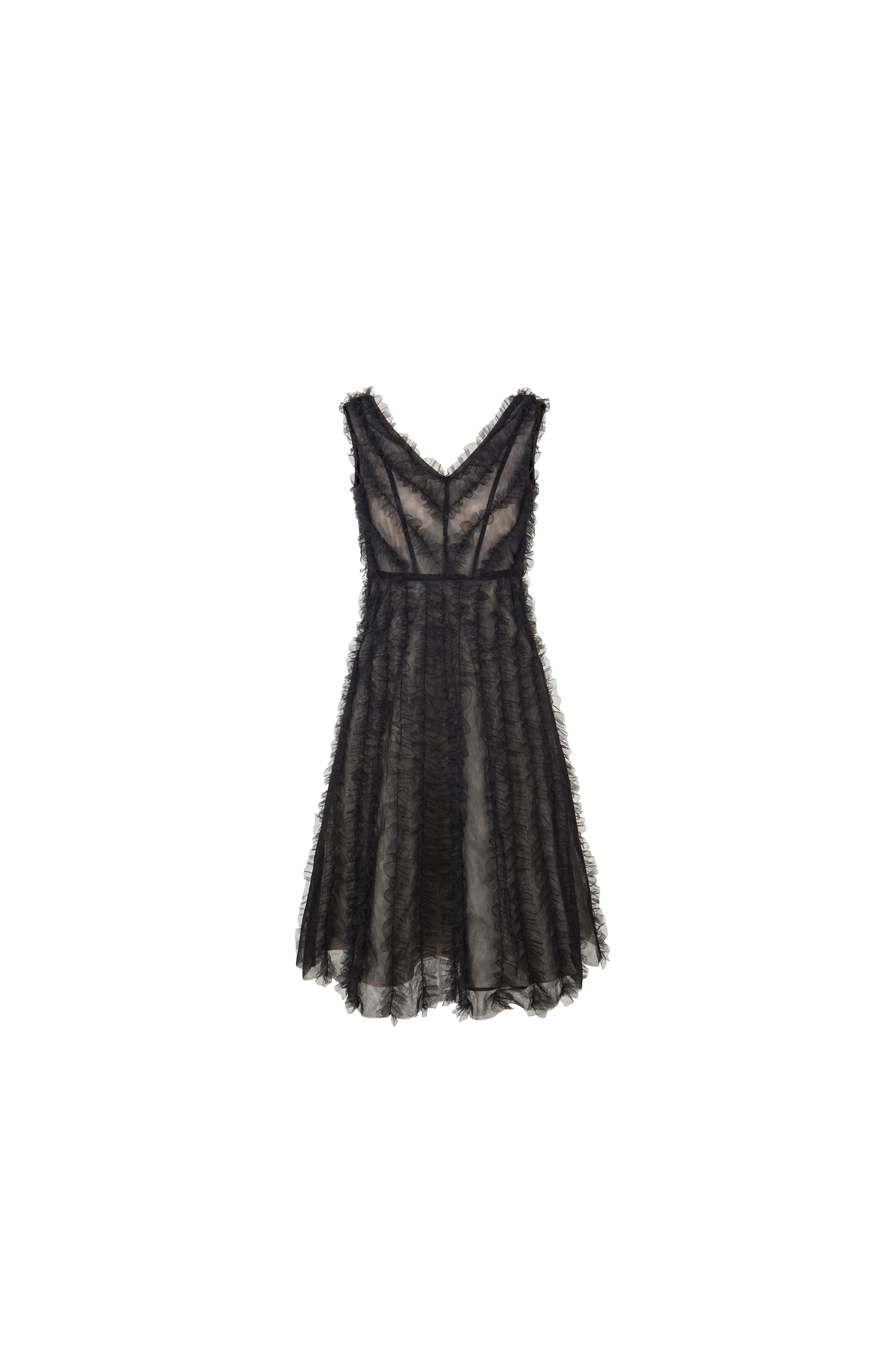 200437立体木耳边深V小黑裙