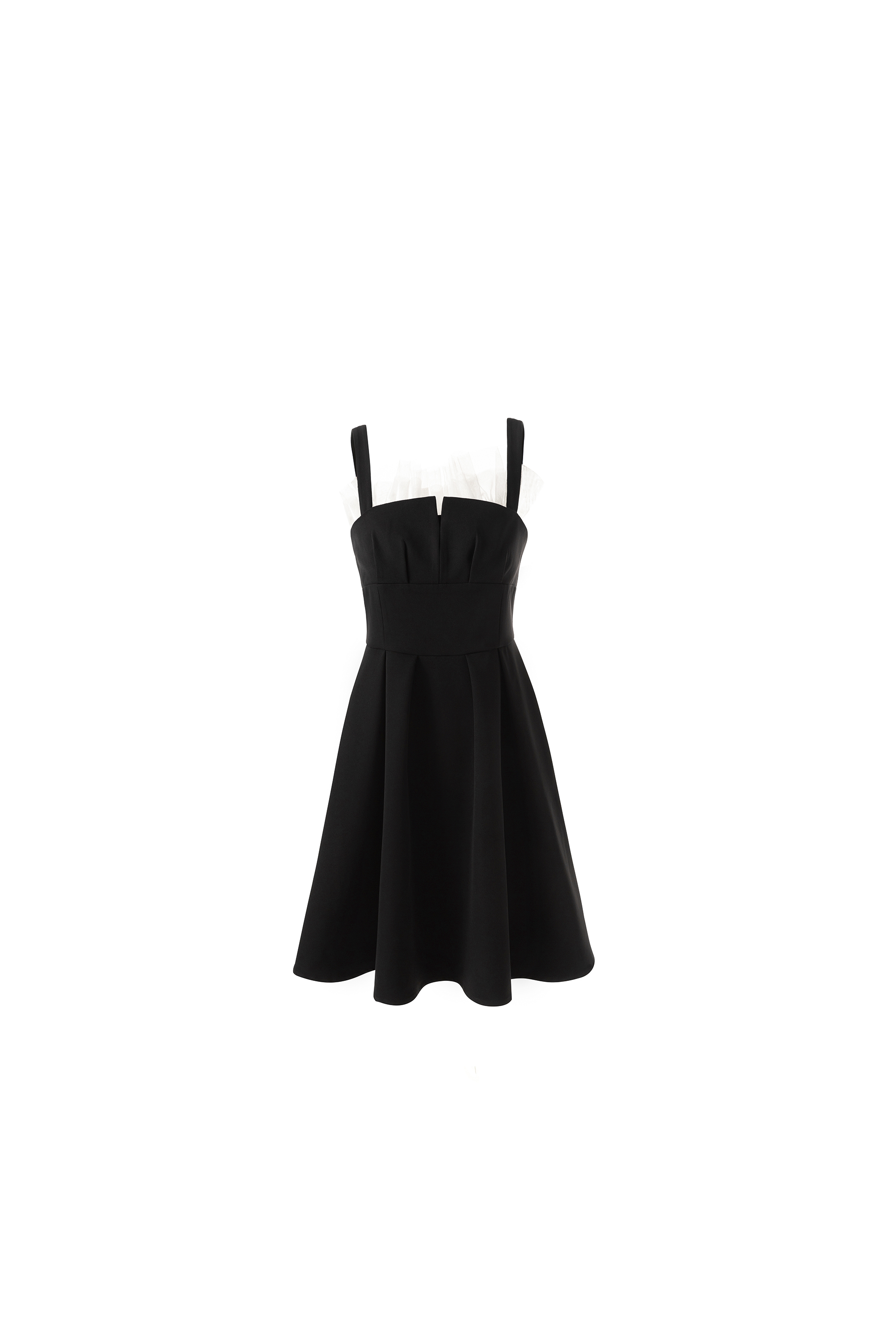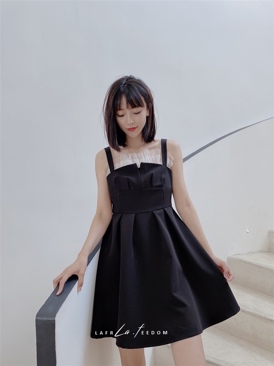 200630拼纱吊带小黑裙