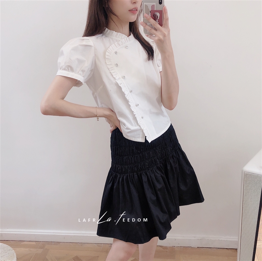 200703不规则门襟钻扣衬衫