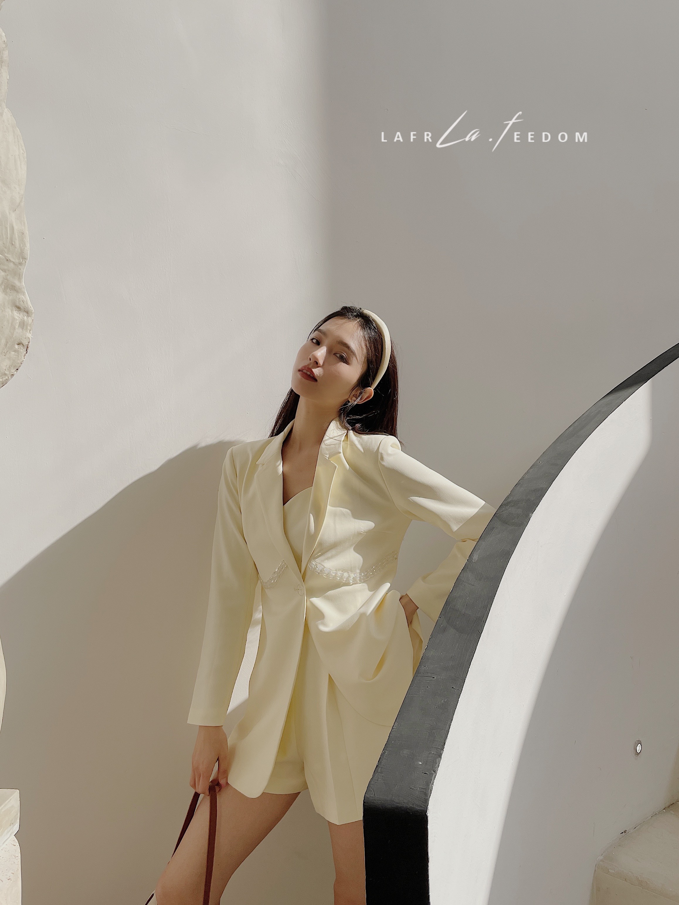 LA210308 水晶珠串西服背心连体裤两件套
