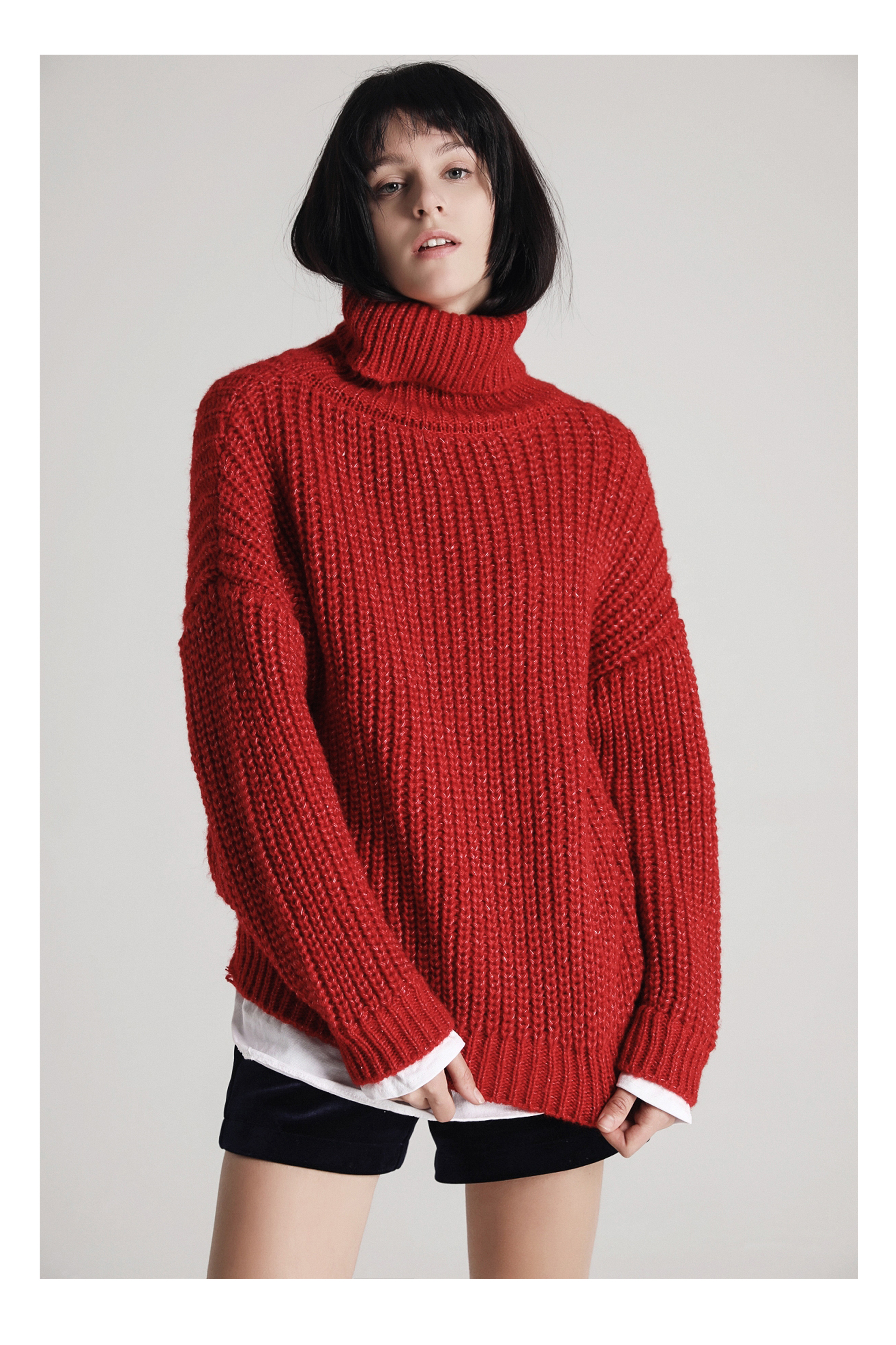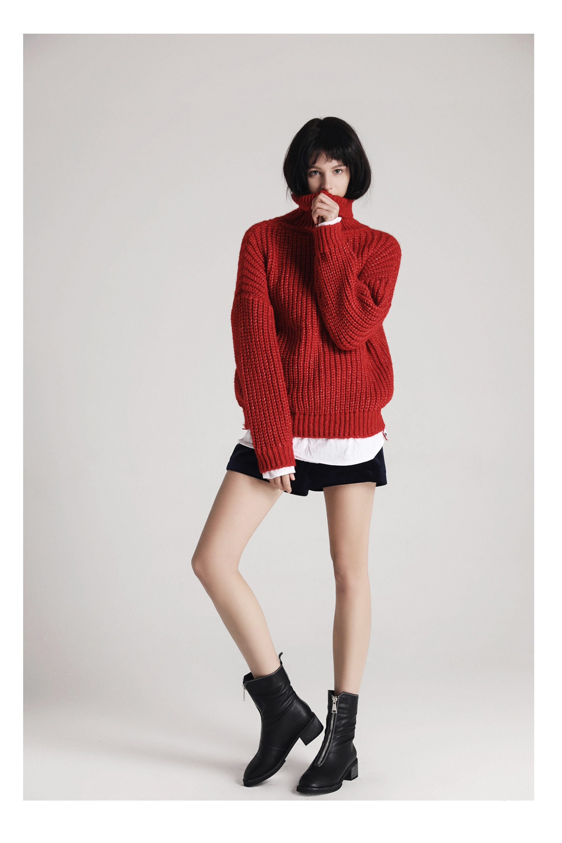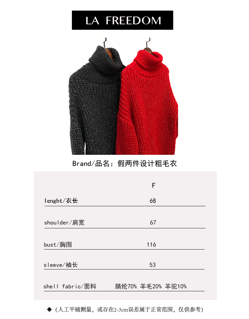假两件设计粗毛衣-红色