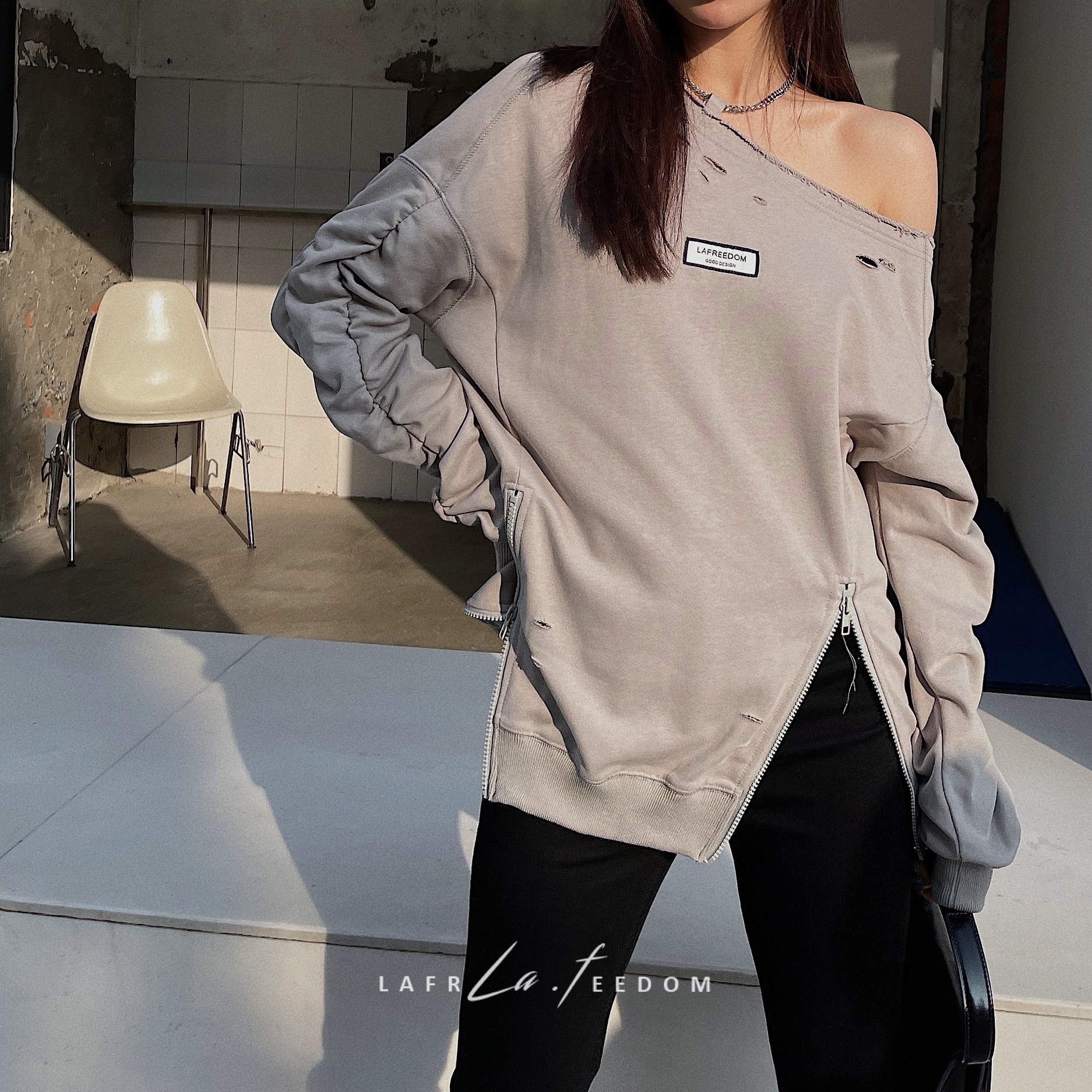 LA210321LAF颈链露肩小众卫衣