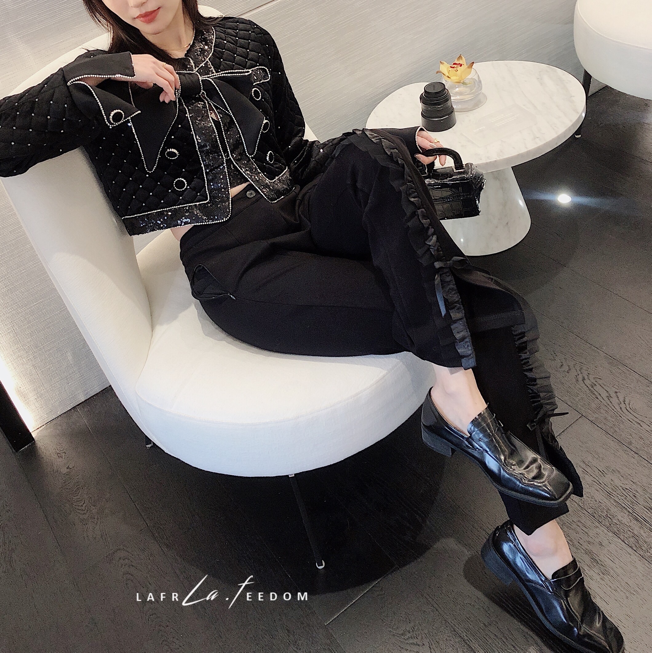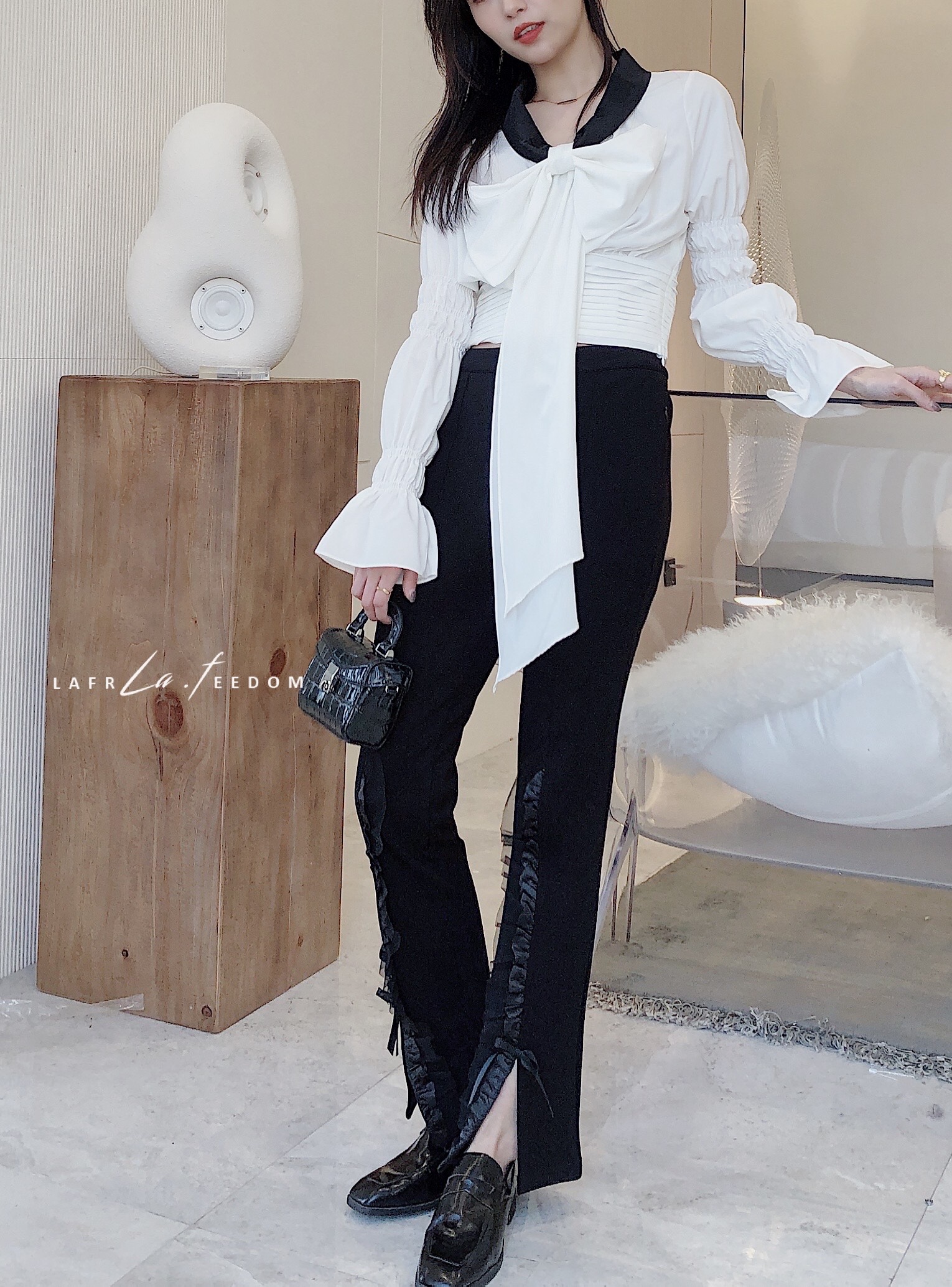LA210110花边开衩设计感喇叭西装裤