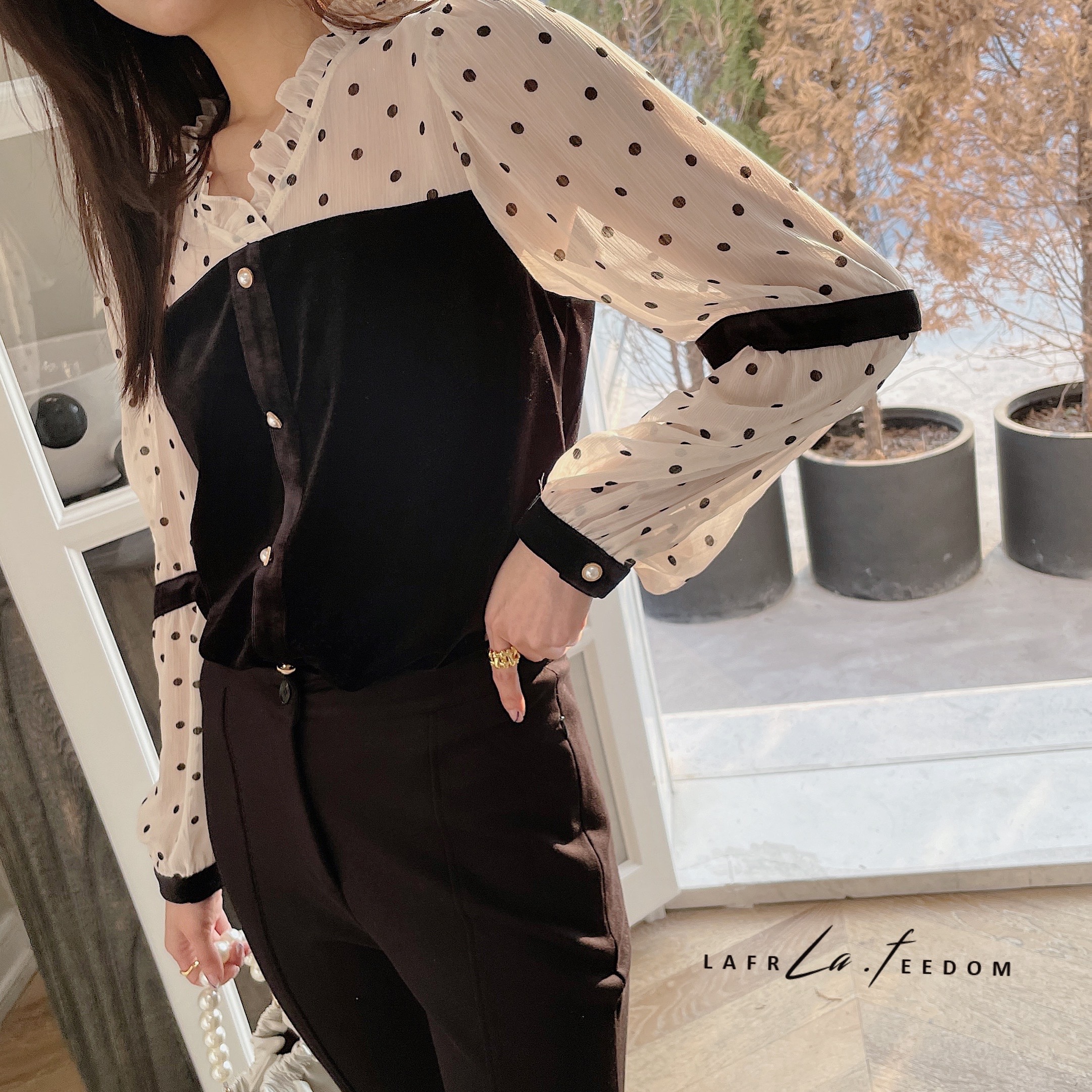 LA210208丝绒拼接复古波波上衣
