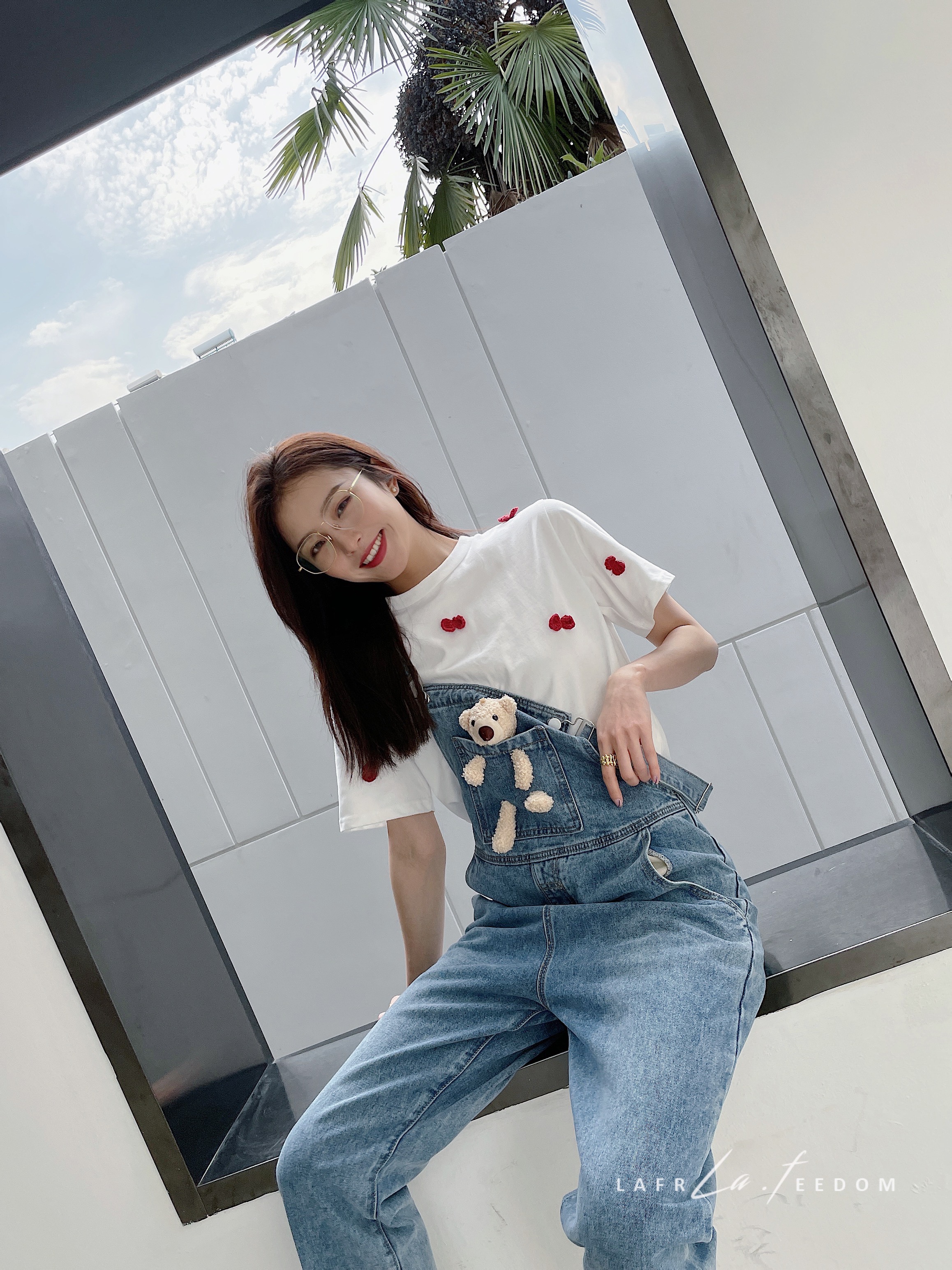 LA210209口袋熊休闲牛仔背带裤