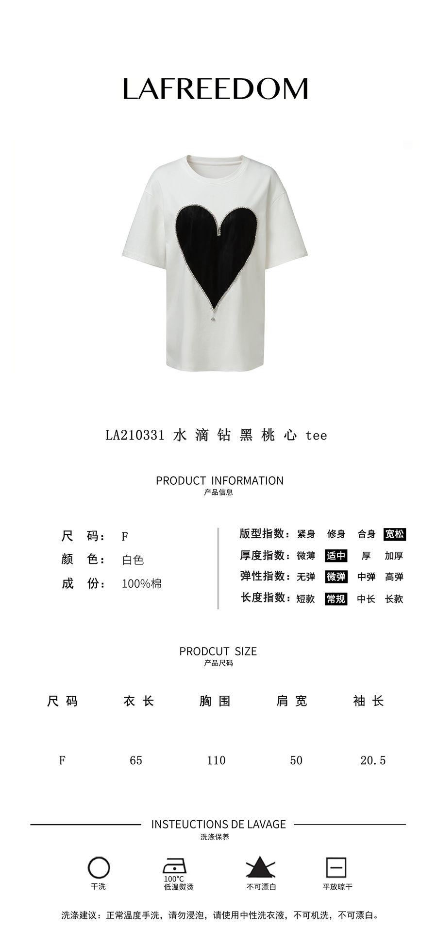 LA210331水滴钻黑桃心tee