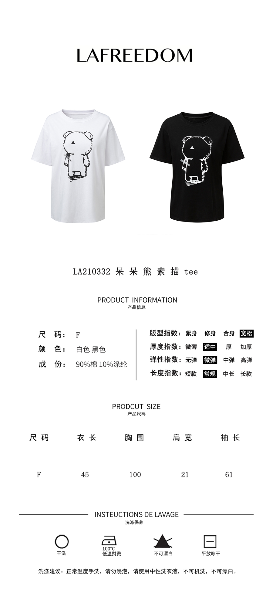 LA210332呆呆熊素描tee