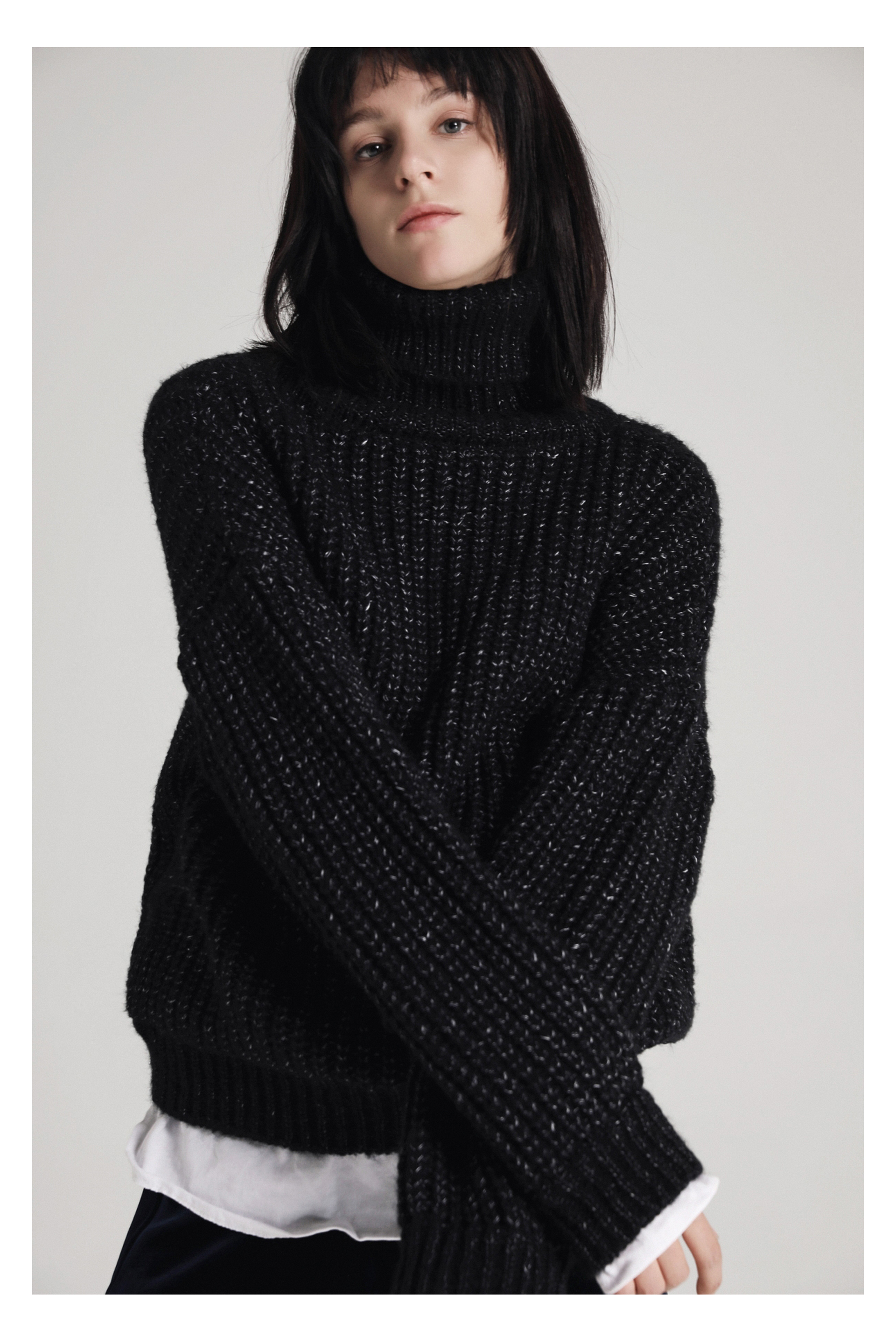 假两件设计粗毛衣-黑色