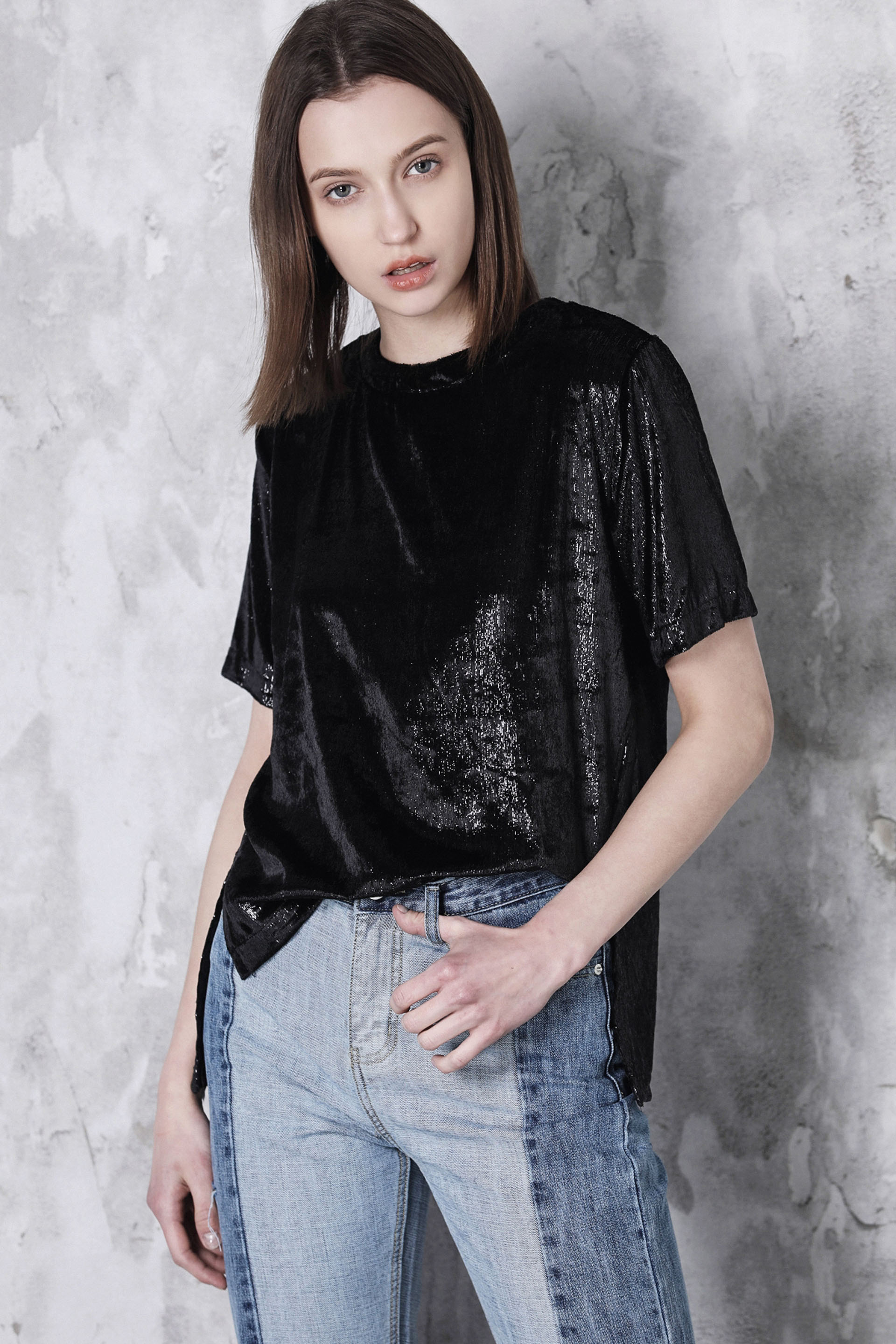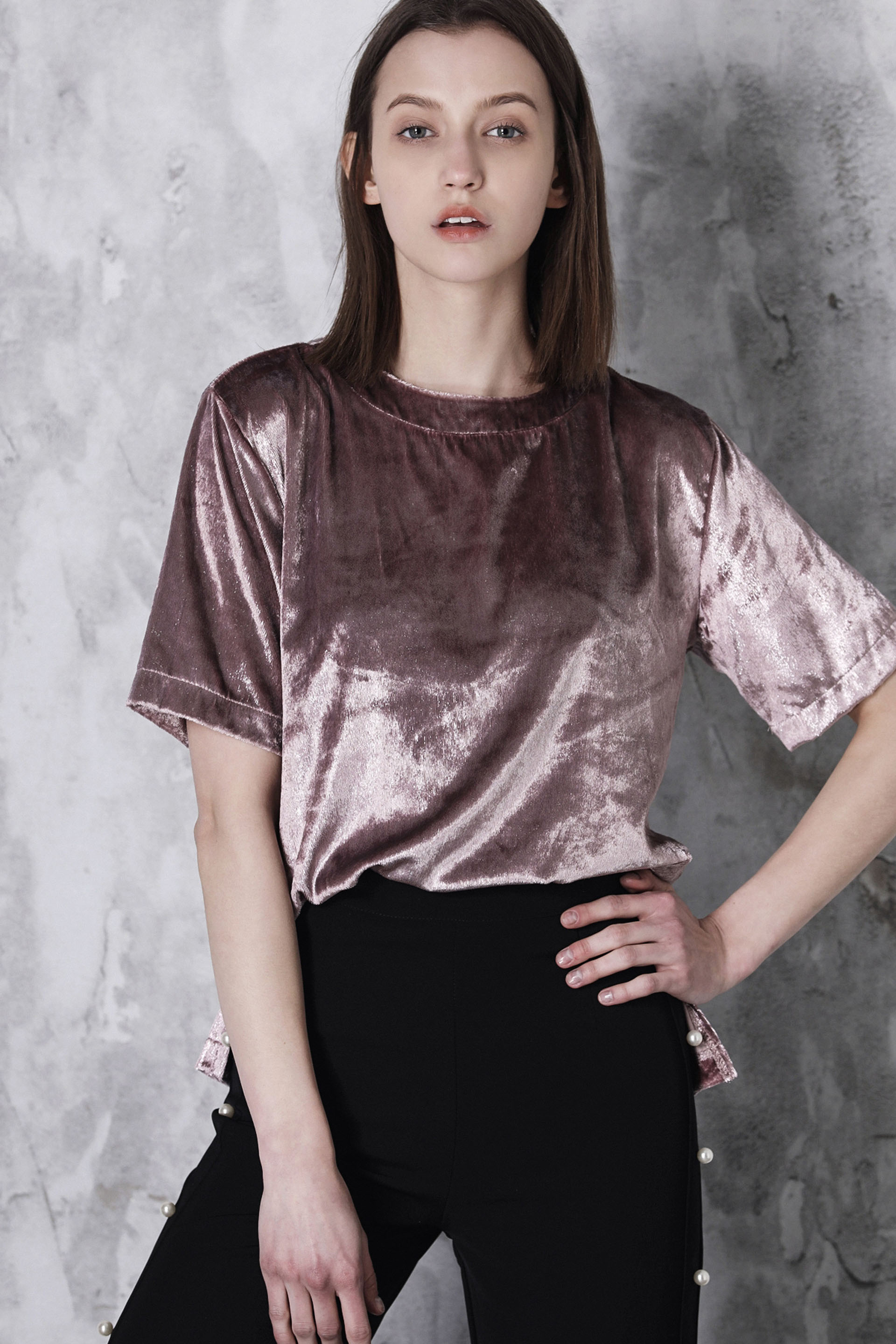 亮光丝绒T恤
