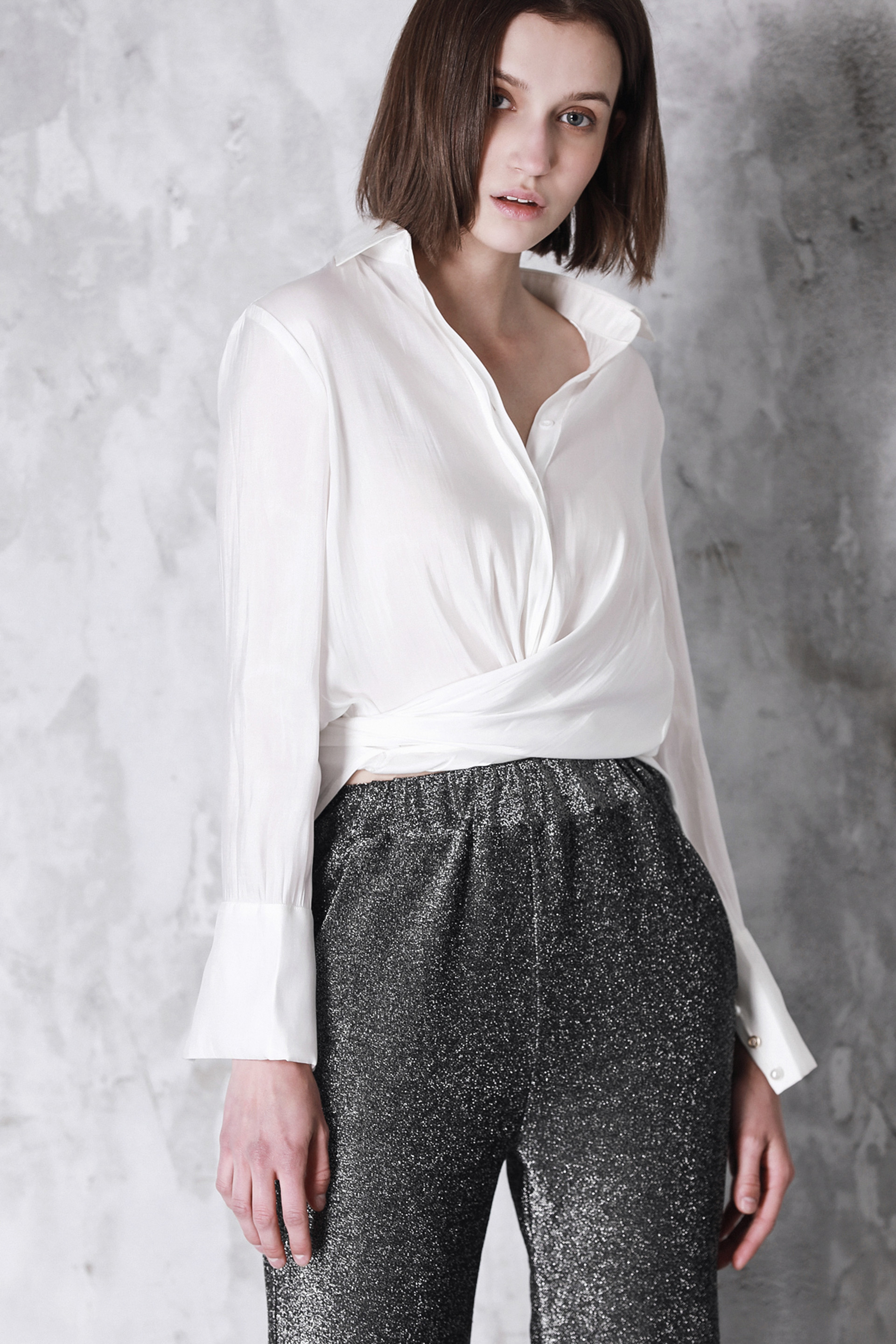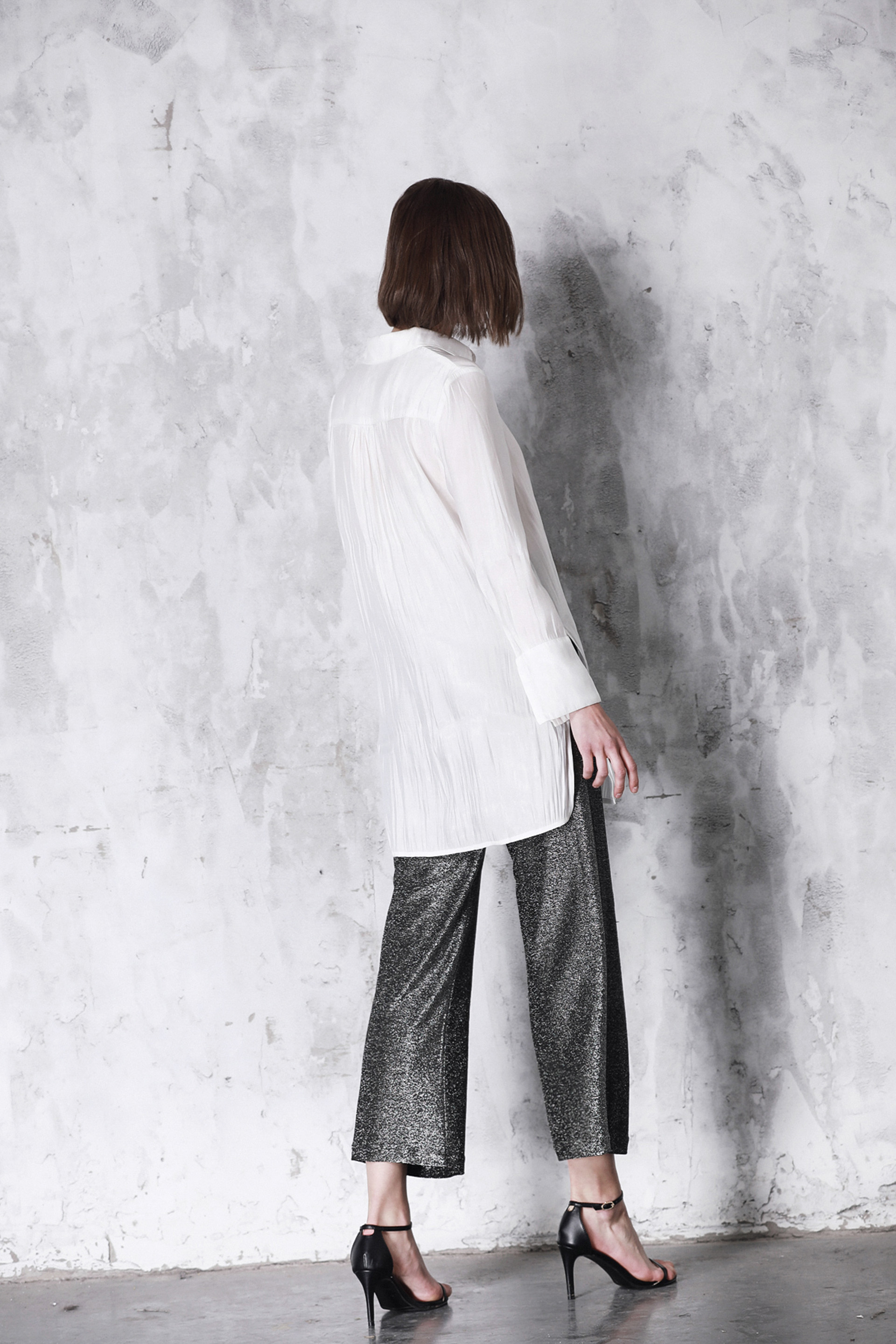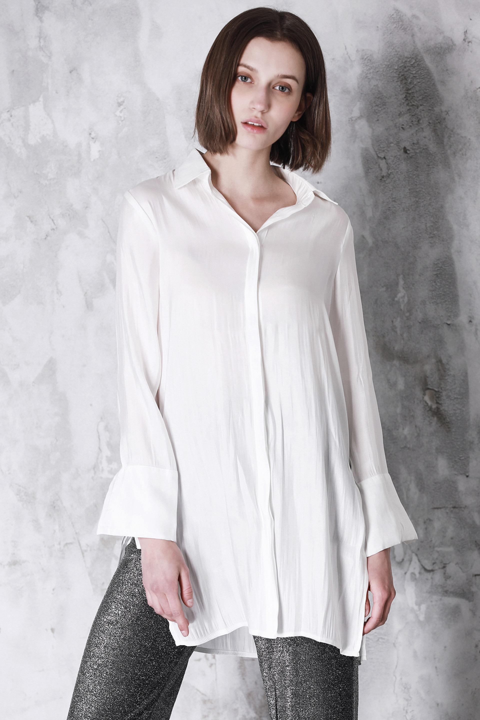 记忆缎面白衬衫