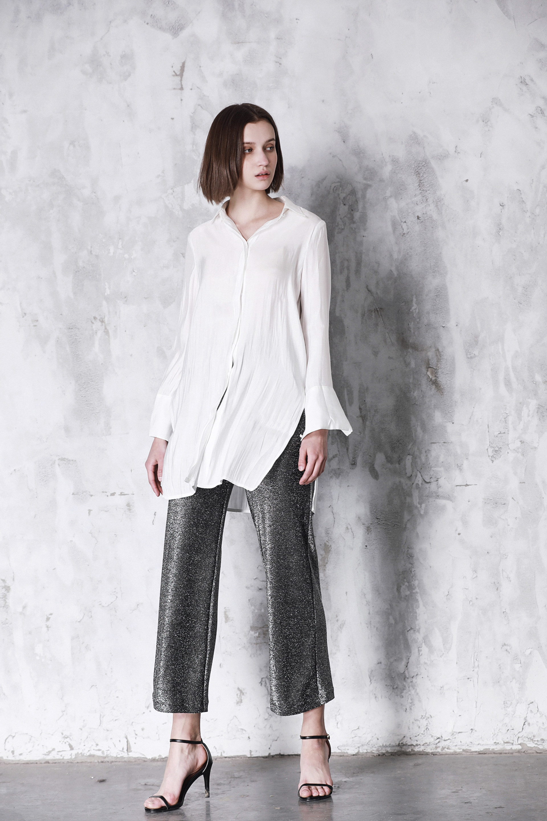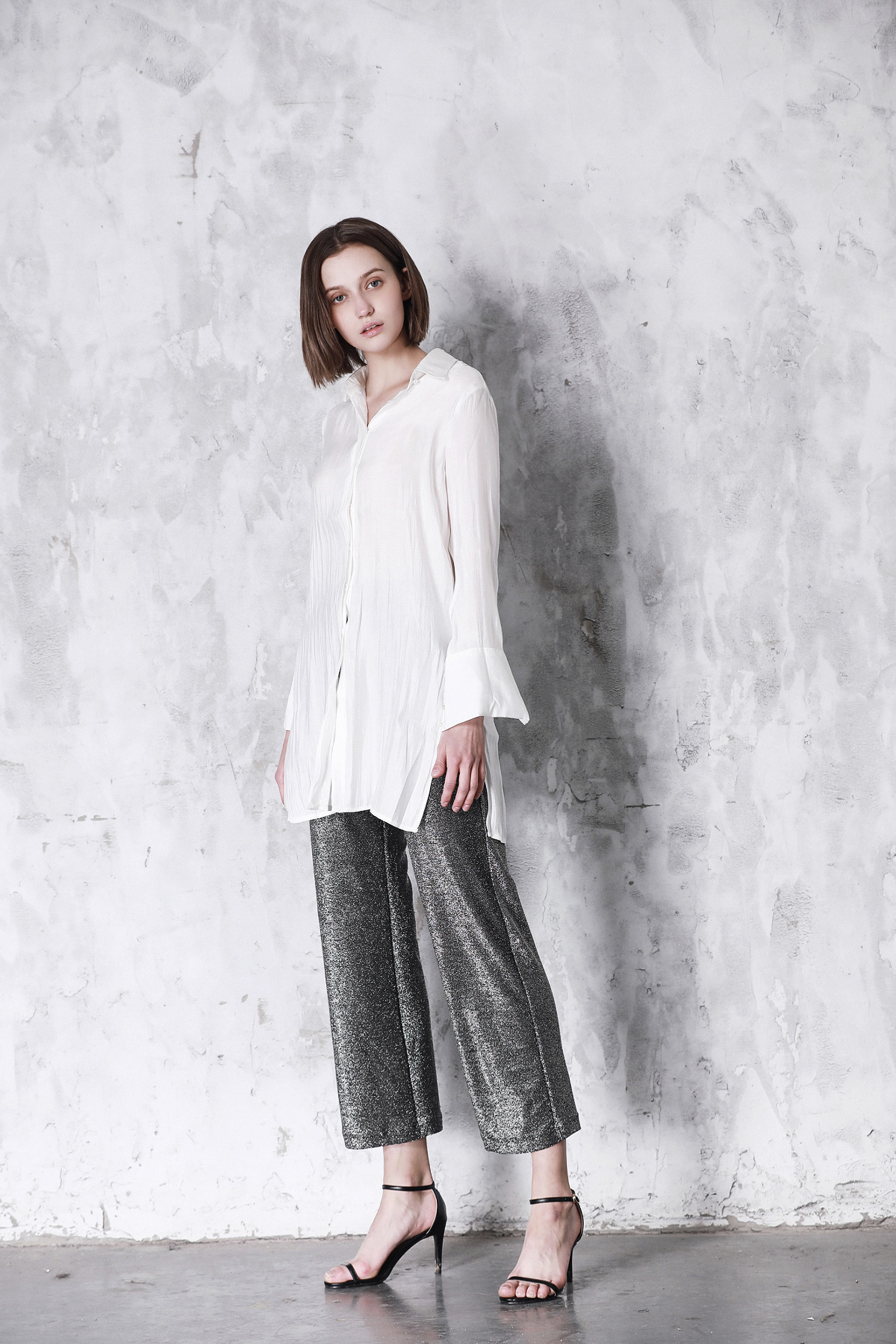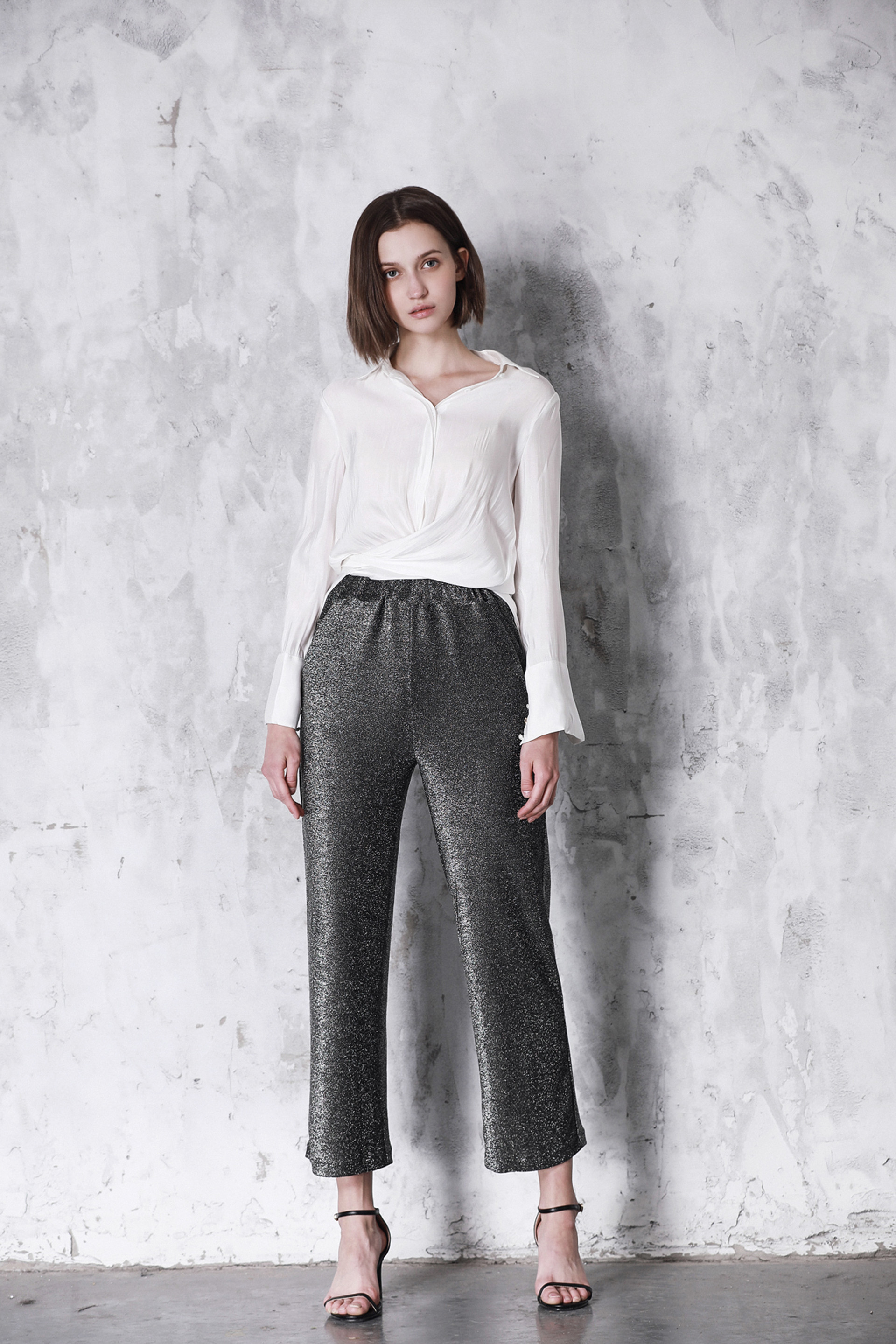 银色修身长裤